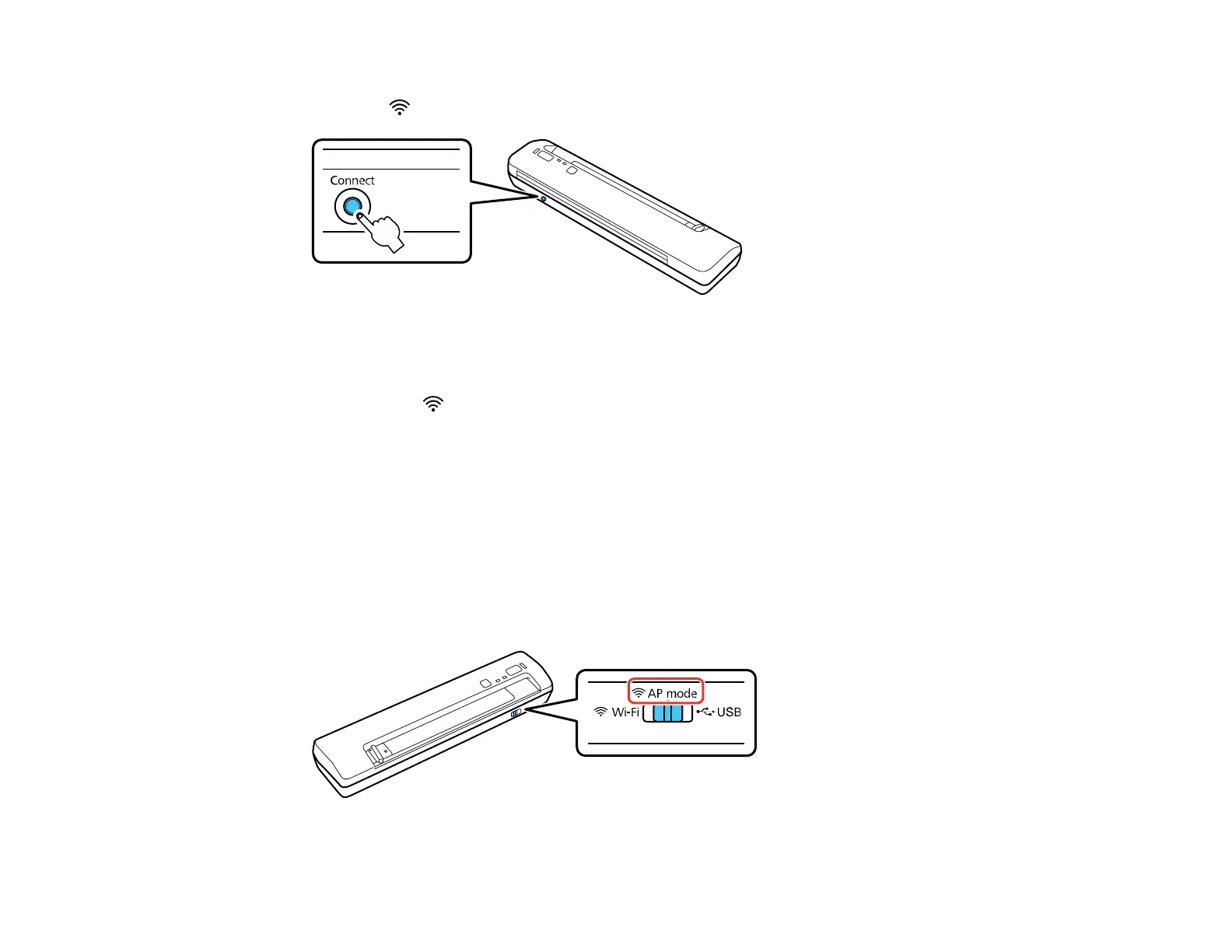 1. Set the connection mode switch on the scanner to AP mode.