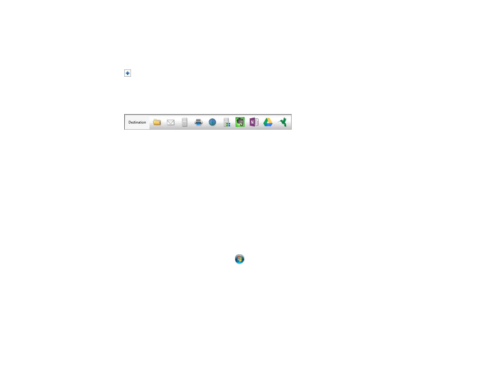 8. Click one of the Destination icons to choose where to send your scanned files. (If you cannot see all