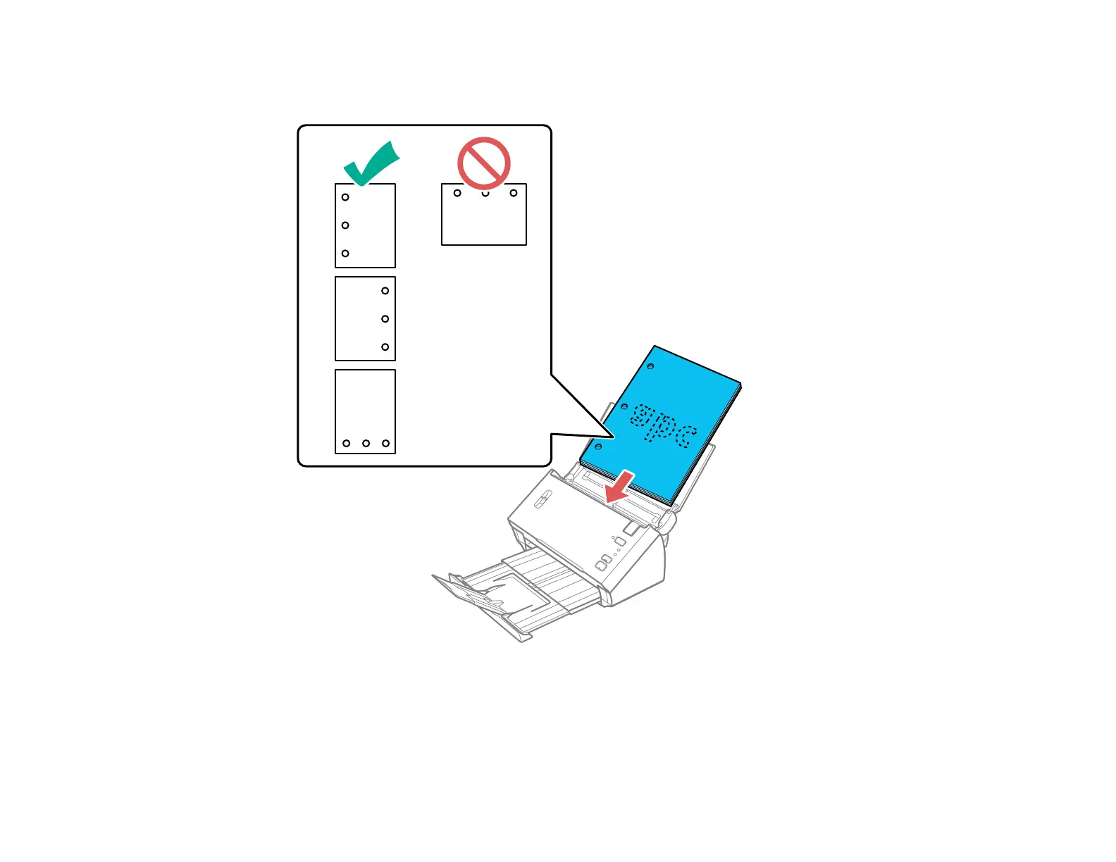 If you are loading hole-punched originals, load them with the holes facing down or to the side as