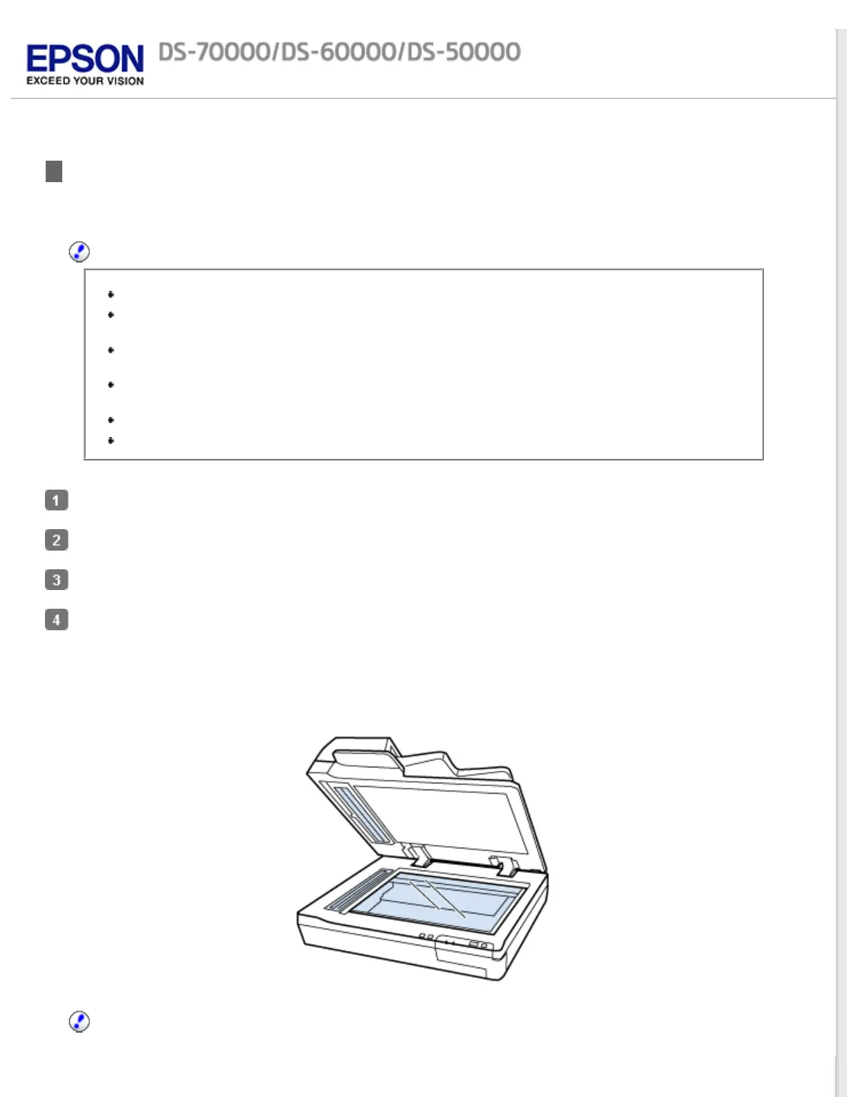 Make sure that dust does not build up on the glass surface. Dust can cause spots and straight lines in your scanned