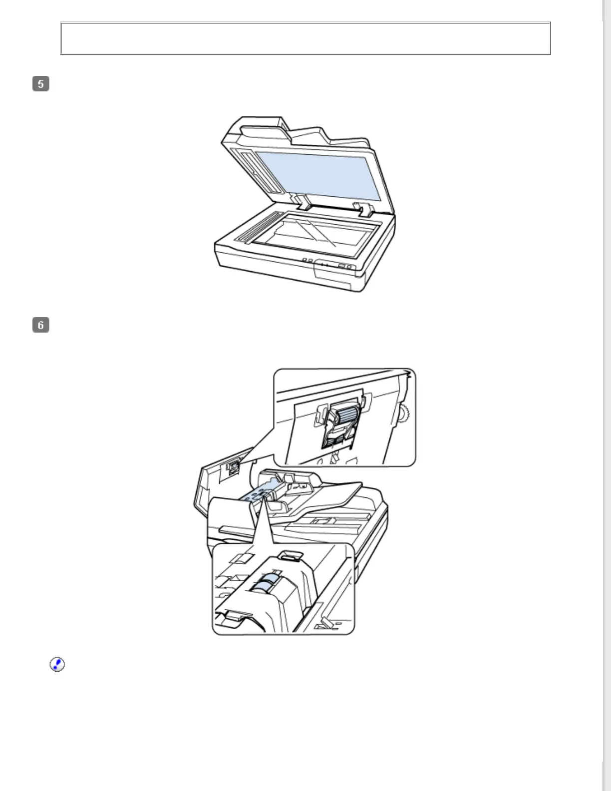 Open the Automatic Document Feeder (ADF) cover and use a soft, dry, clean cloth to clean the roller and the