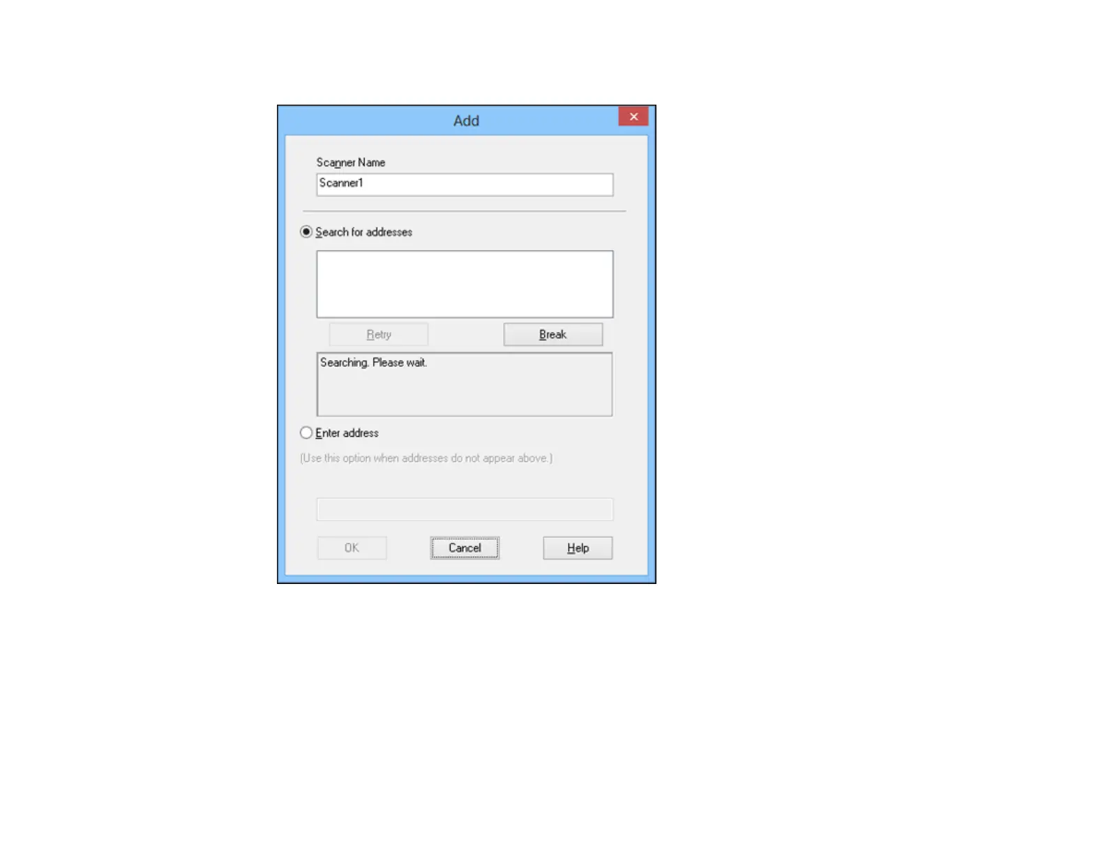 • Under Search for addresses, select the IP address of your Network Interface Unit, and click OK.