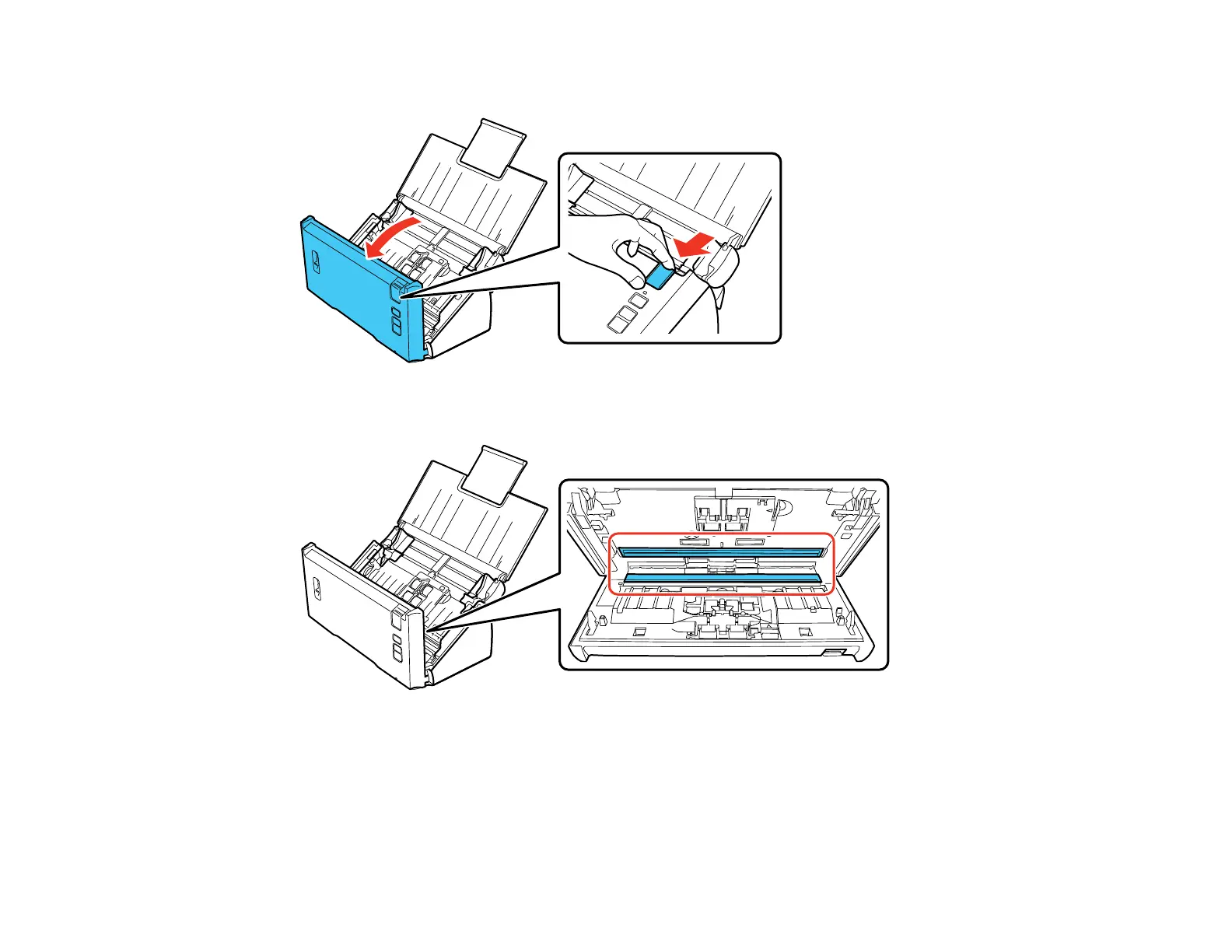 5. Wipe off any stains on the glass scanning surfaces using a soft, dry cloth.