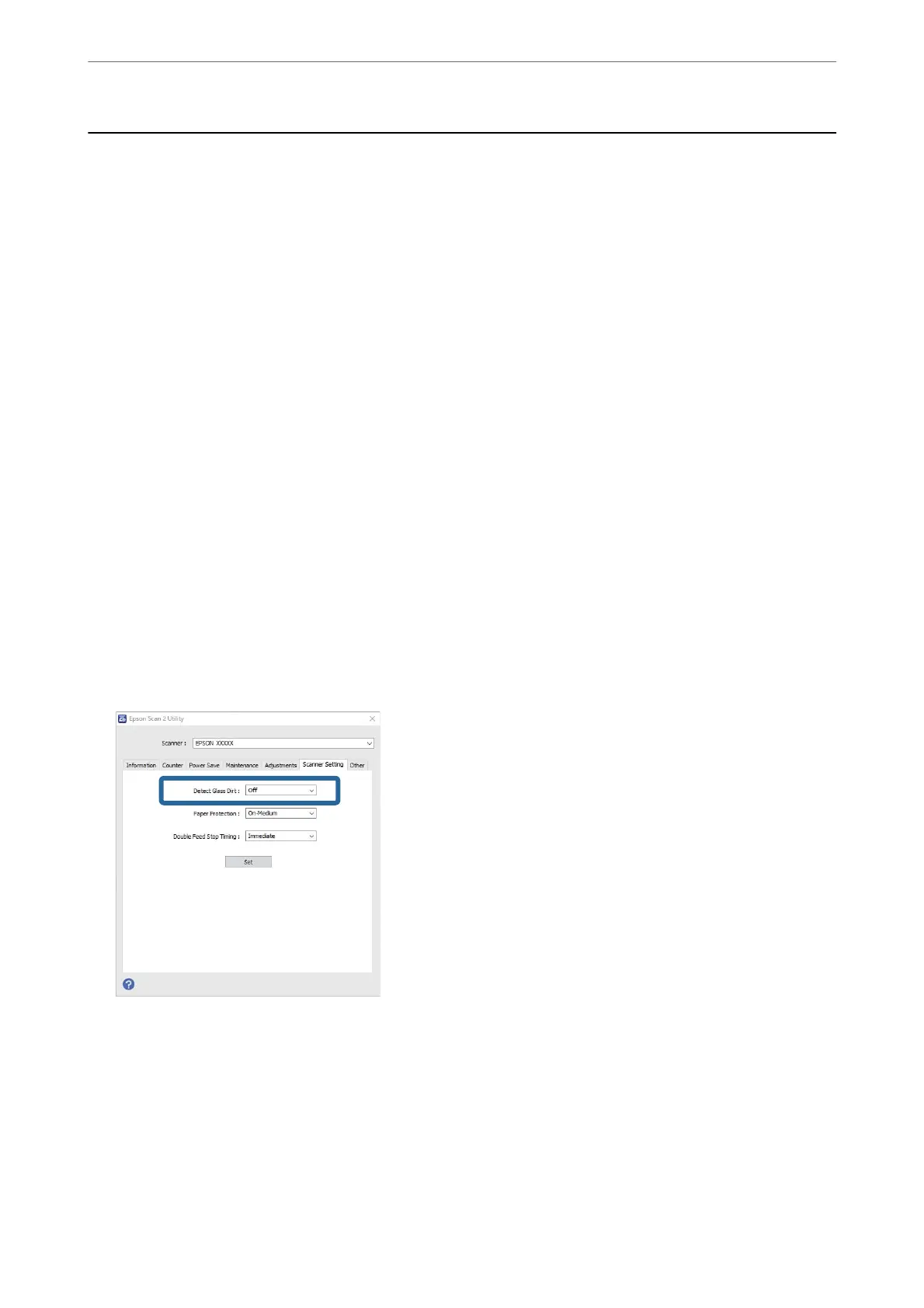 When Detect Glass Dirt is set to On, the scanner detects any stains on the glass surface inside the scanner and