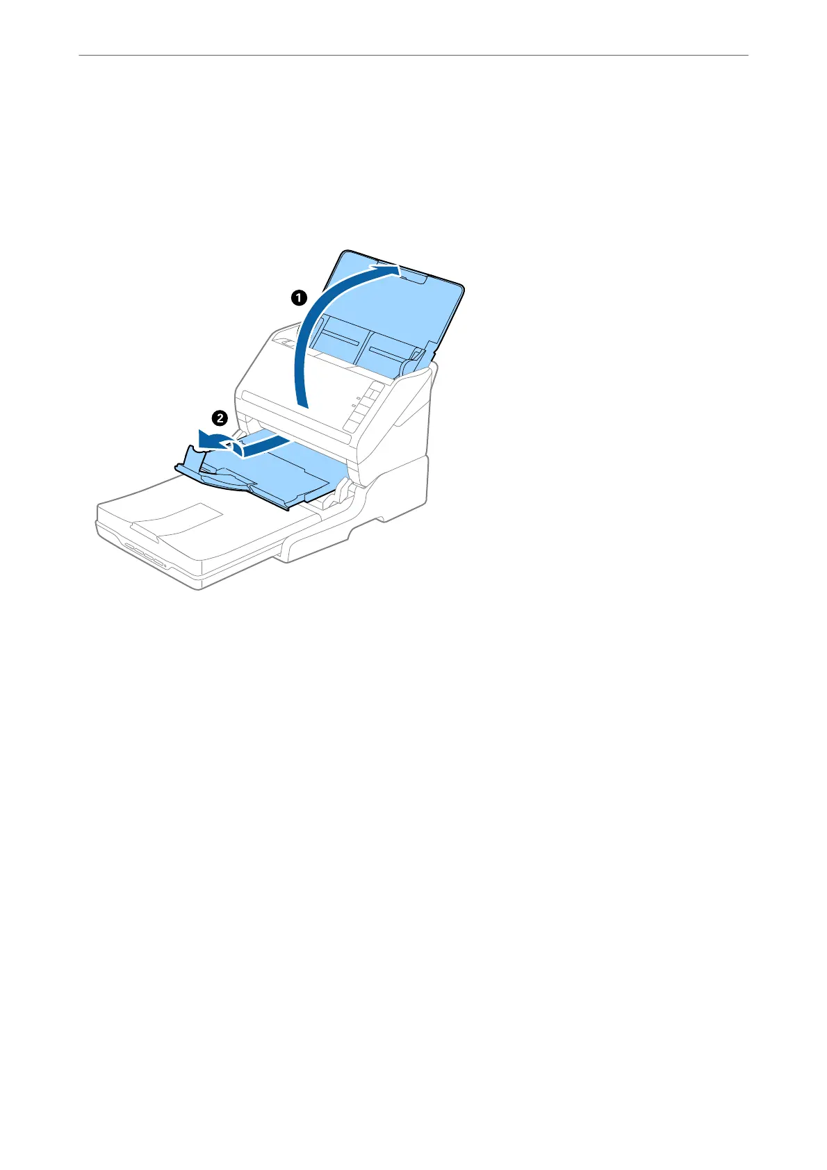Open and extend the input tray, and then raise the stopper of the Flatbed Scanner Dock.