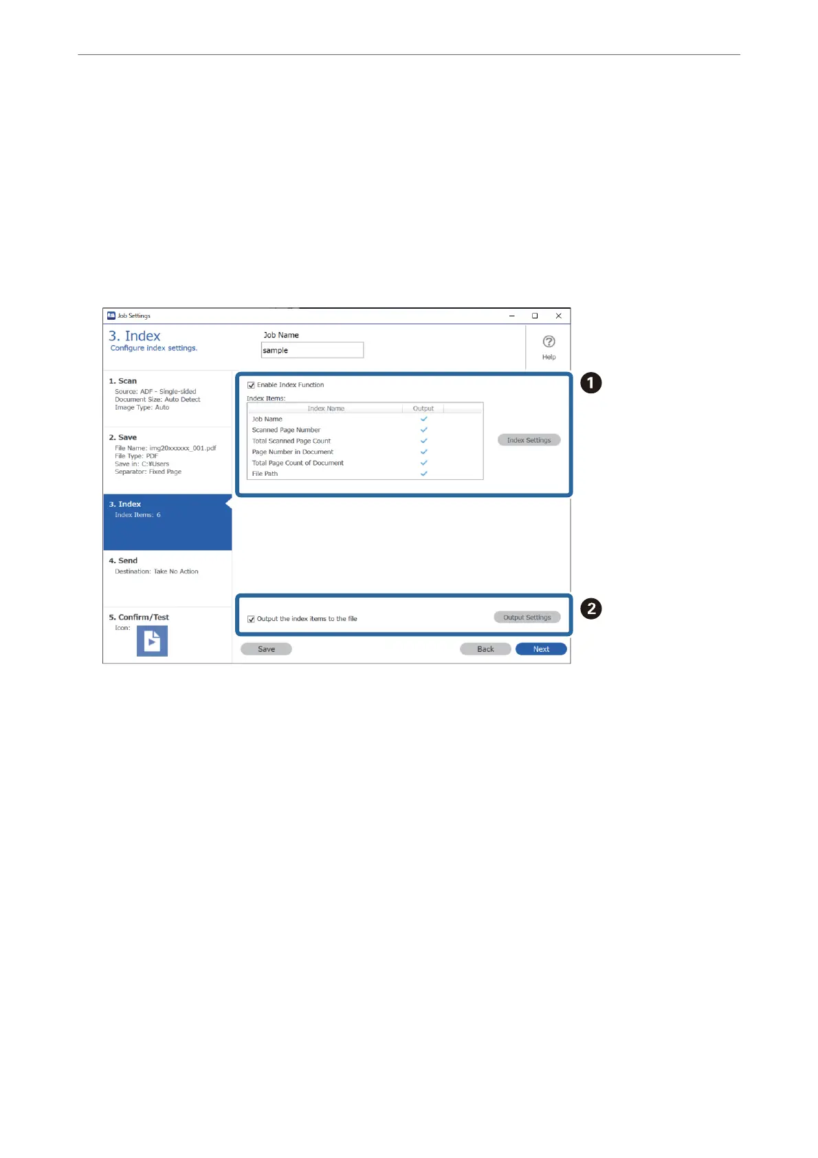 When you have nished making save settings, click Next or the 3. Index tab.