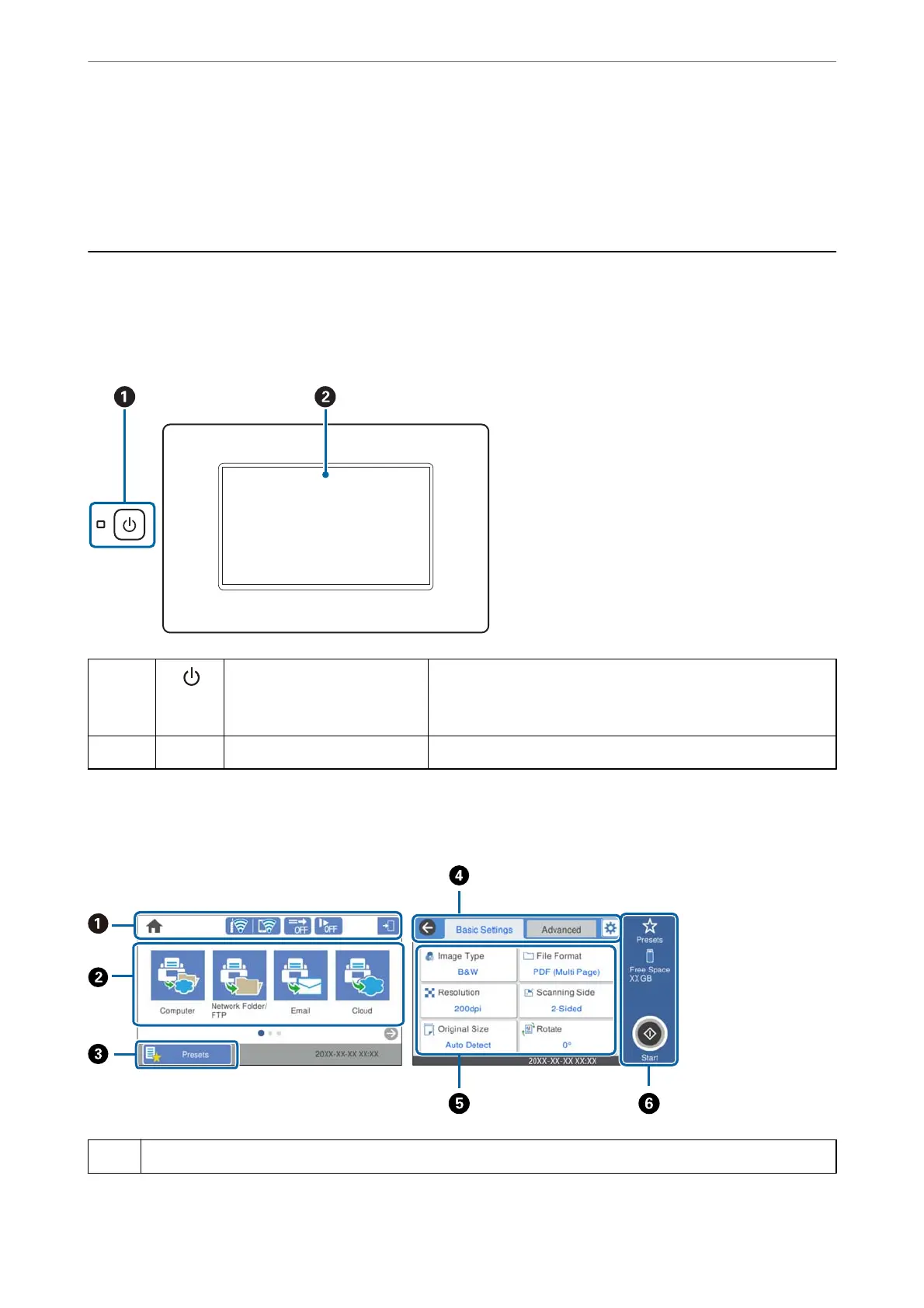 Indicates the scanner status as icons. Select the icon to check the current settings or access each setting menu.