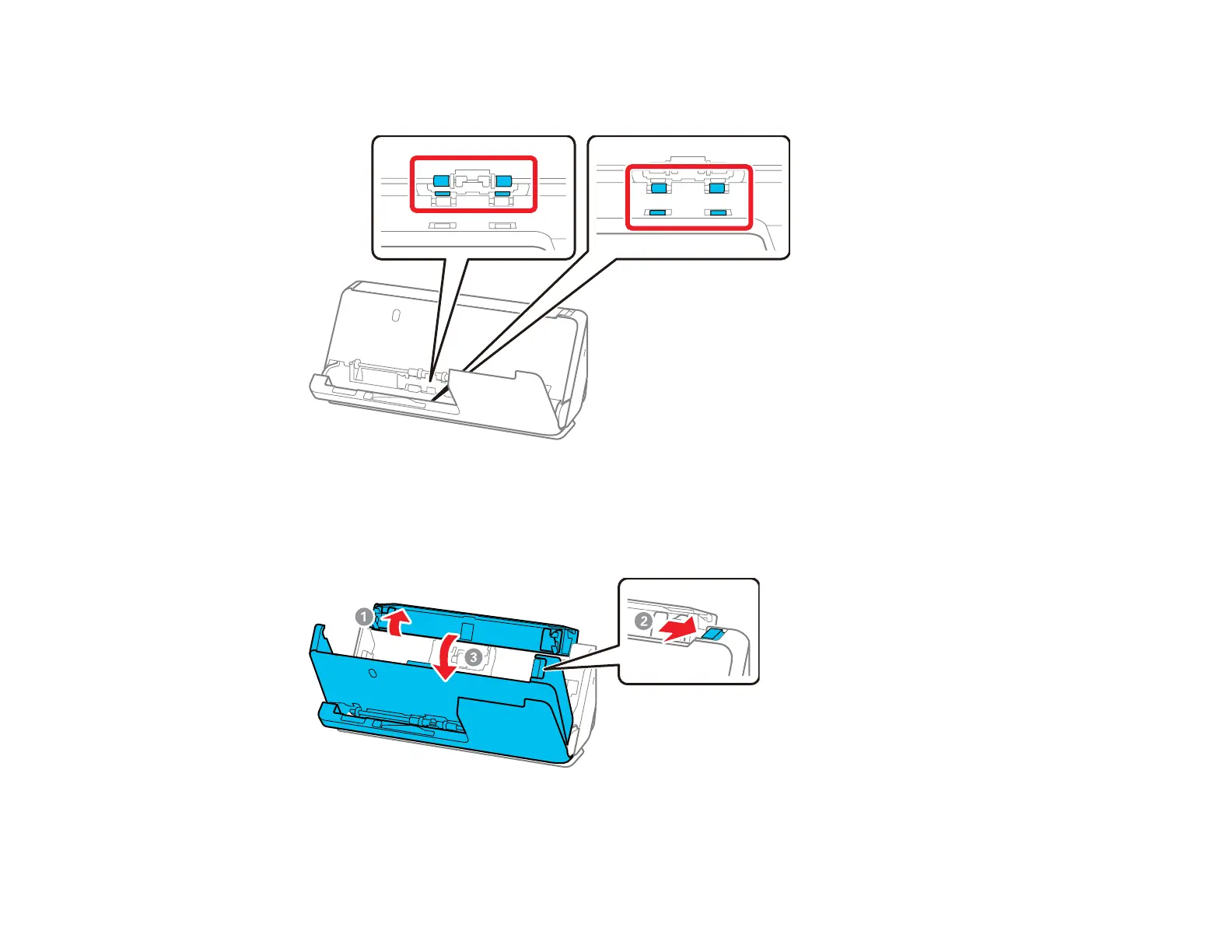 2. Wipe the rollers and plastic rollers with a soft, lint-free cloth dampened with a small amount of