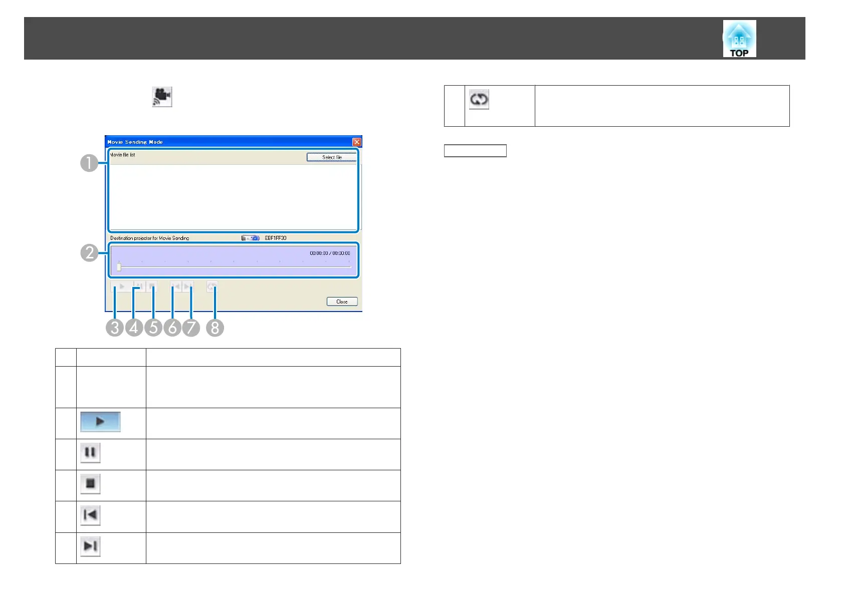 Movie file list Displays a list of selected movie files.