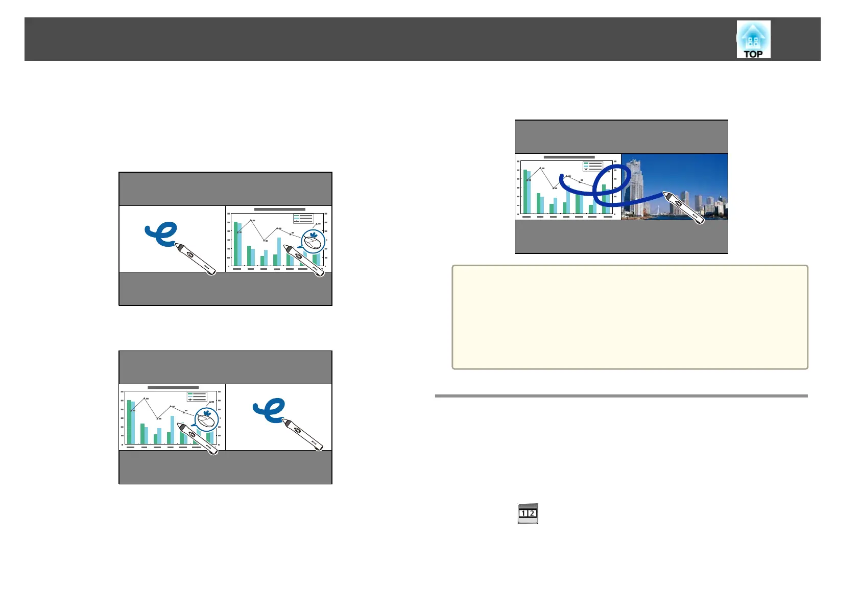 • When using annotation mode on both screens, you can write and draw