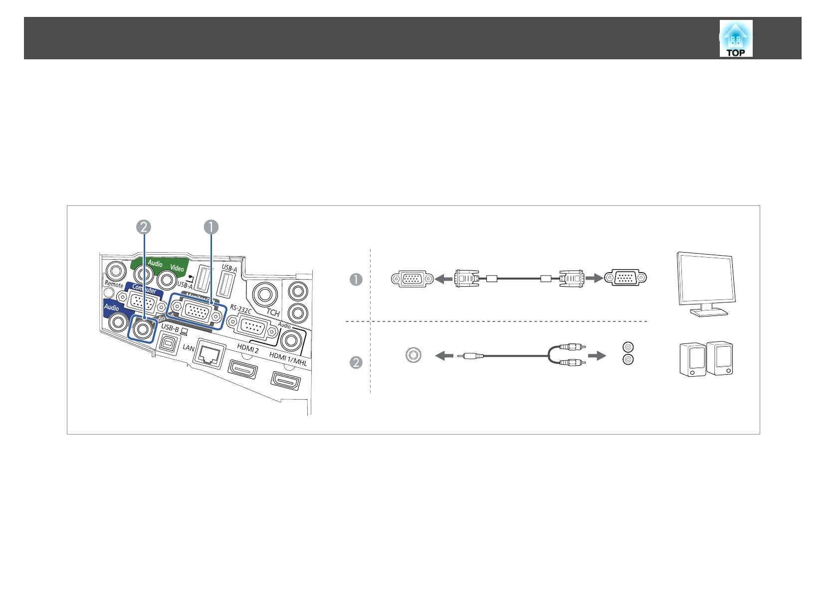 Connect the external speaker to the projector's Audio Out port using a commercially available audio cable.