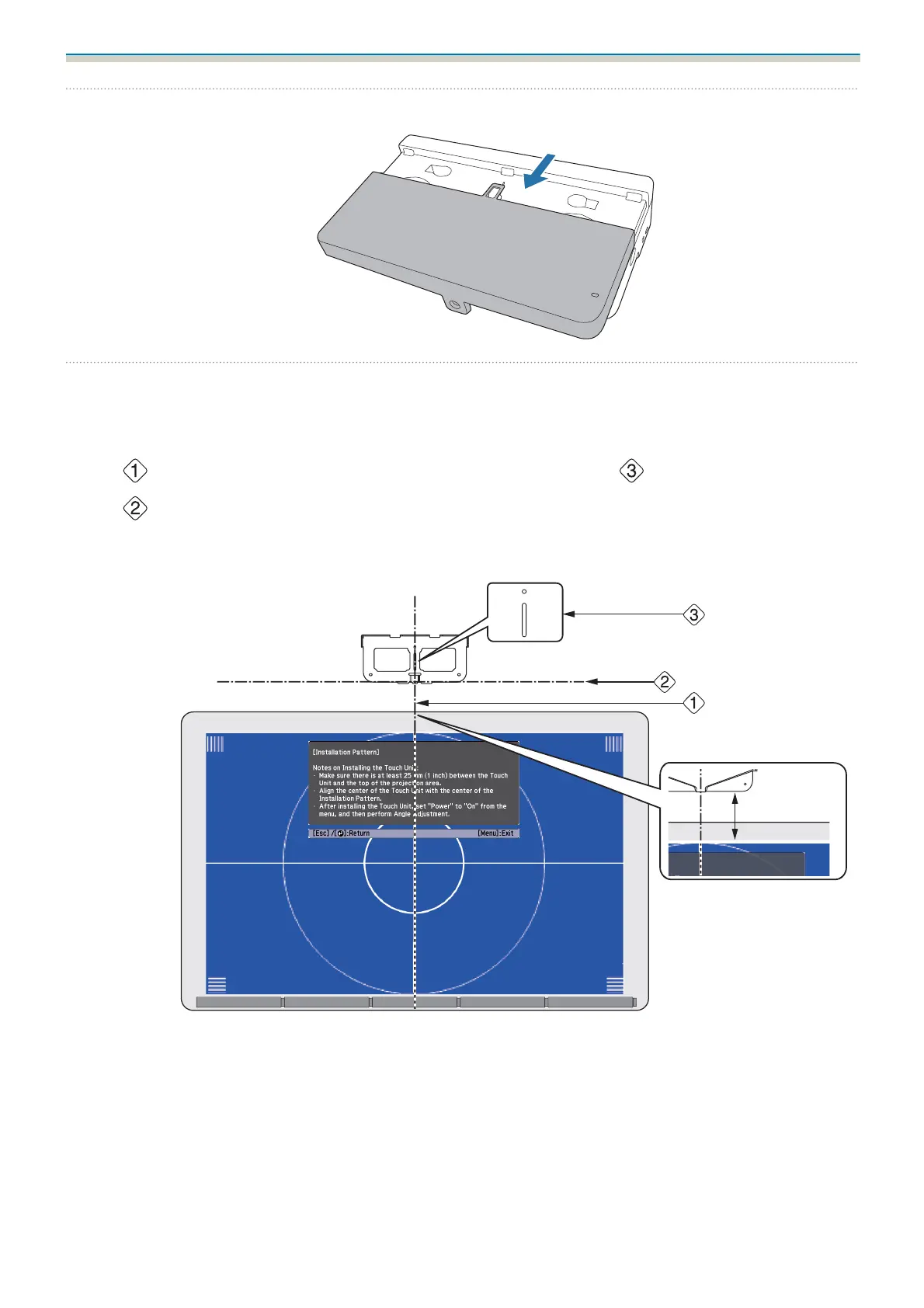 ): 25 to 100 mm from the top edge (white line) of the projected image. Align with the bottom line