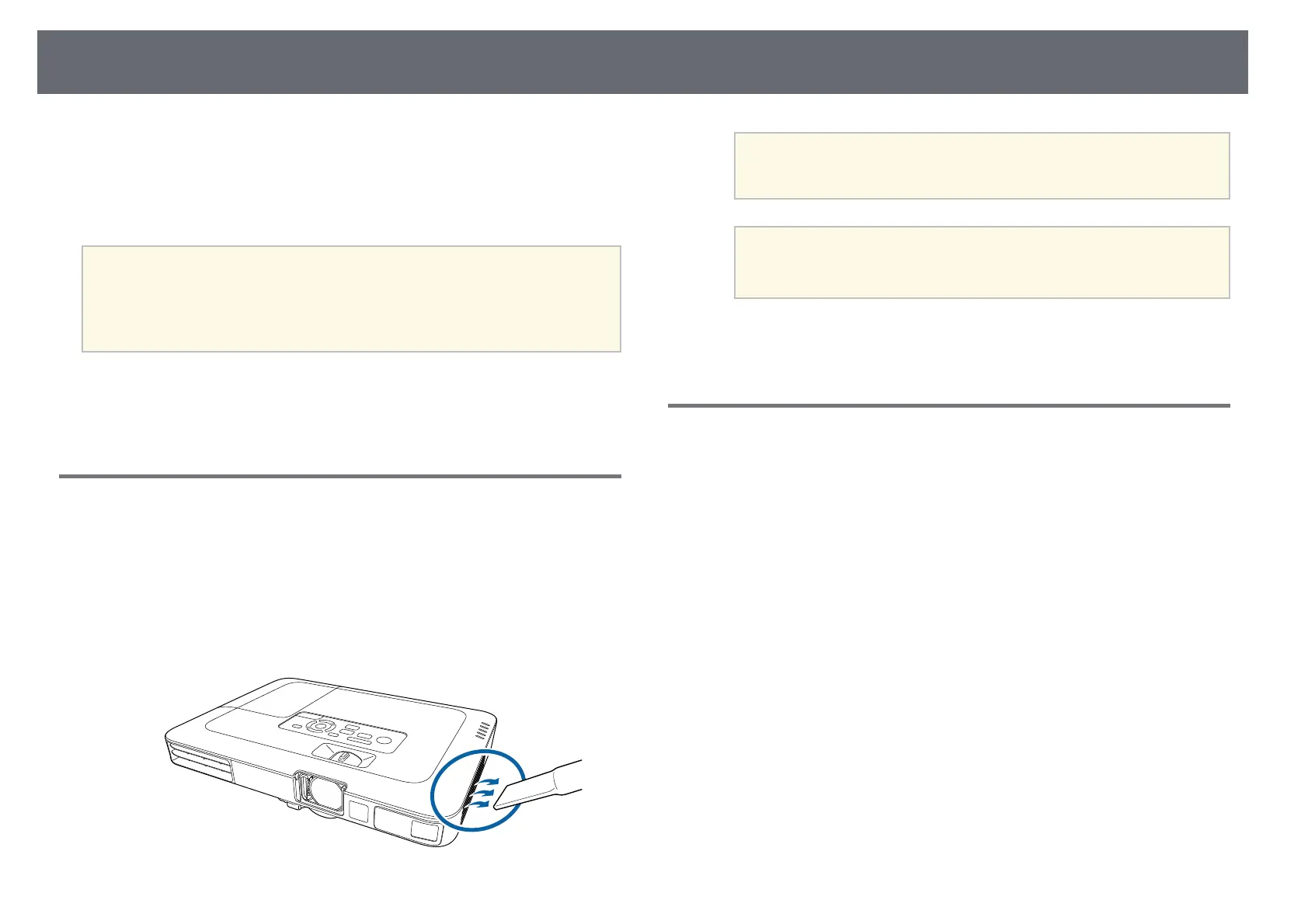 Clean the projector's air filter or vents if they get dusty, or if you see a