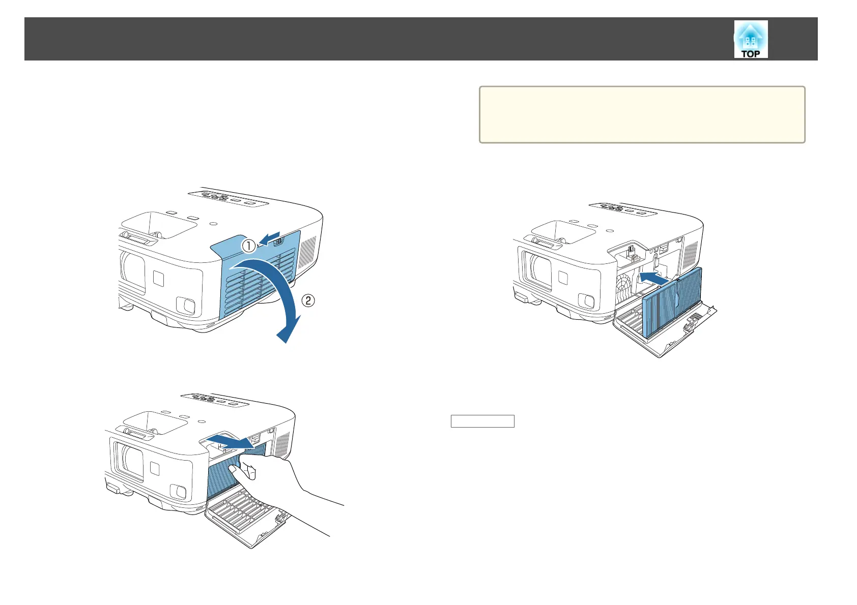 You can replace the air filter while the projector is mounted to the ceiling