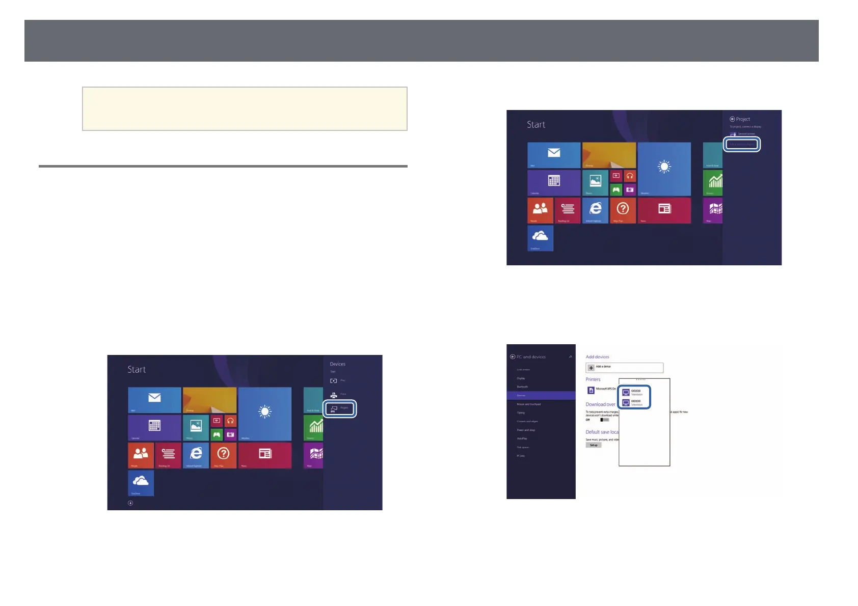 On your computer, select Devices from Charms and select Project.