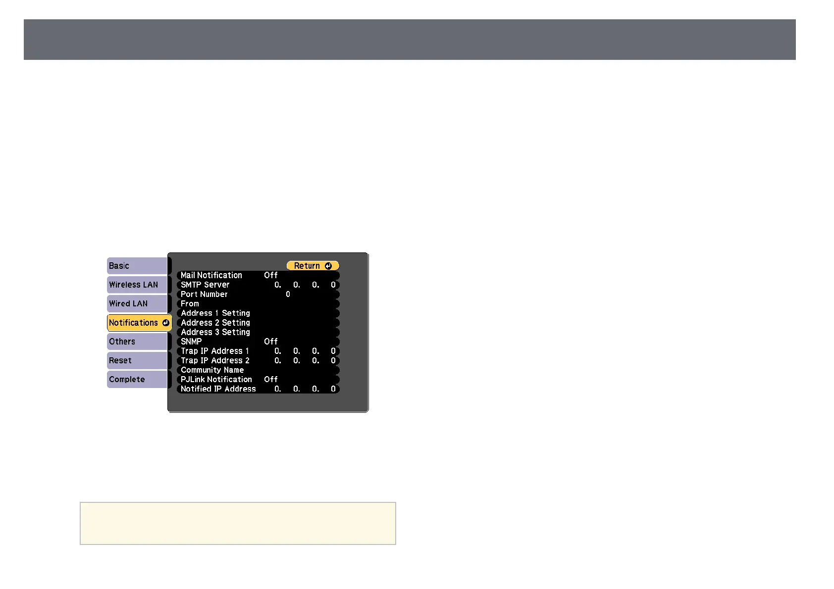 Select the Notifications menu and press [Enter].