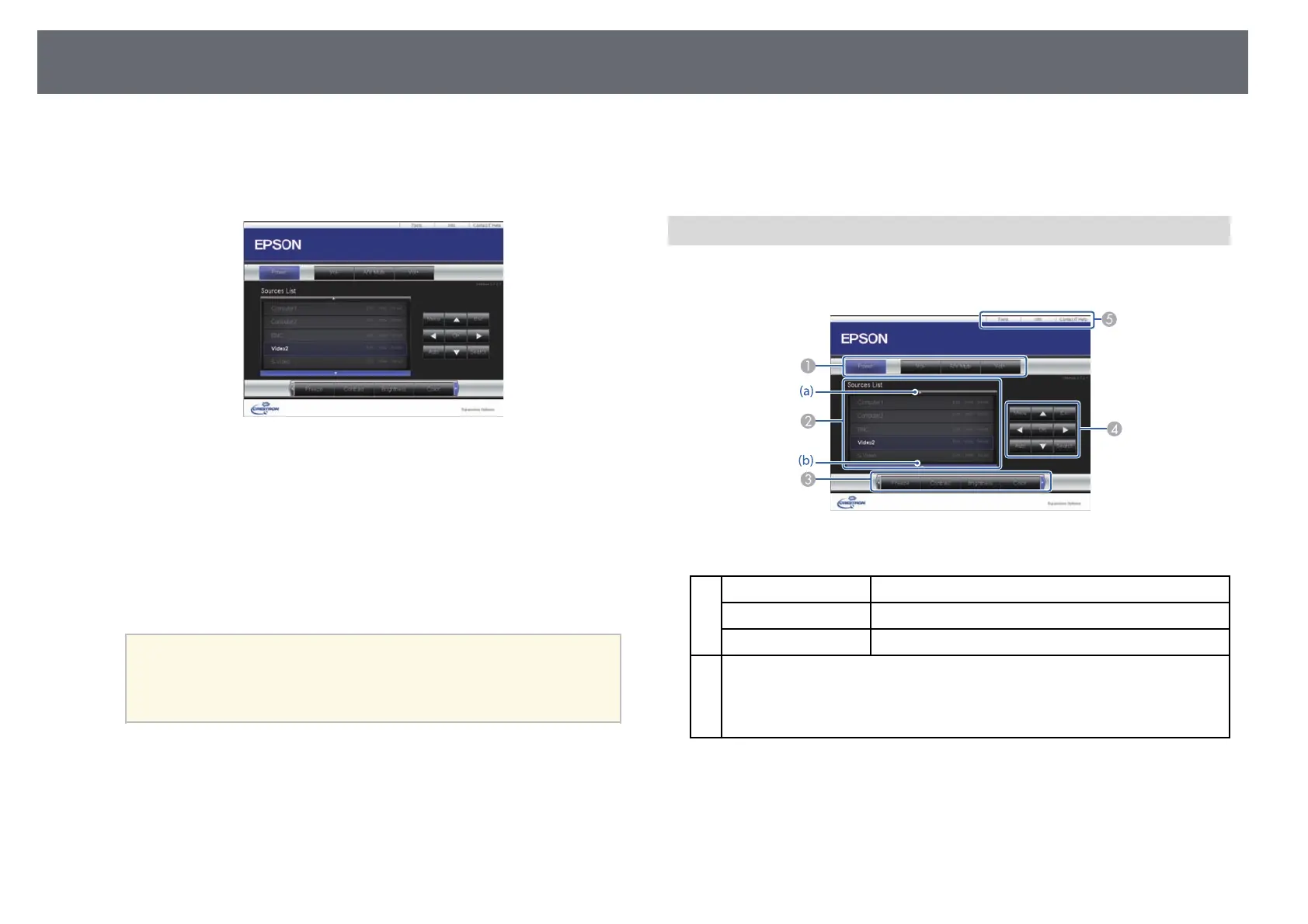 To control projection remotely, click the on-screen buttons that