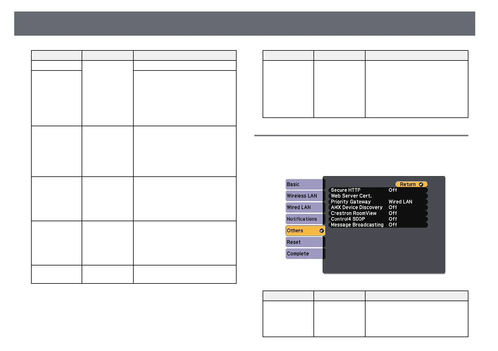 Epson EB-2165W - Network Menu - Others Menu