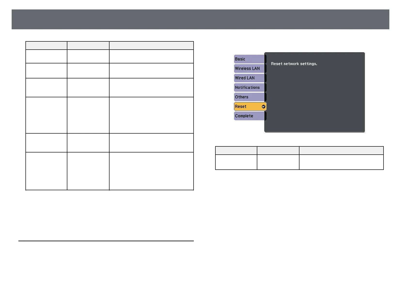 Network Menu - Reset Menu