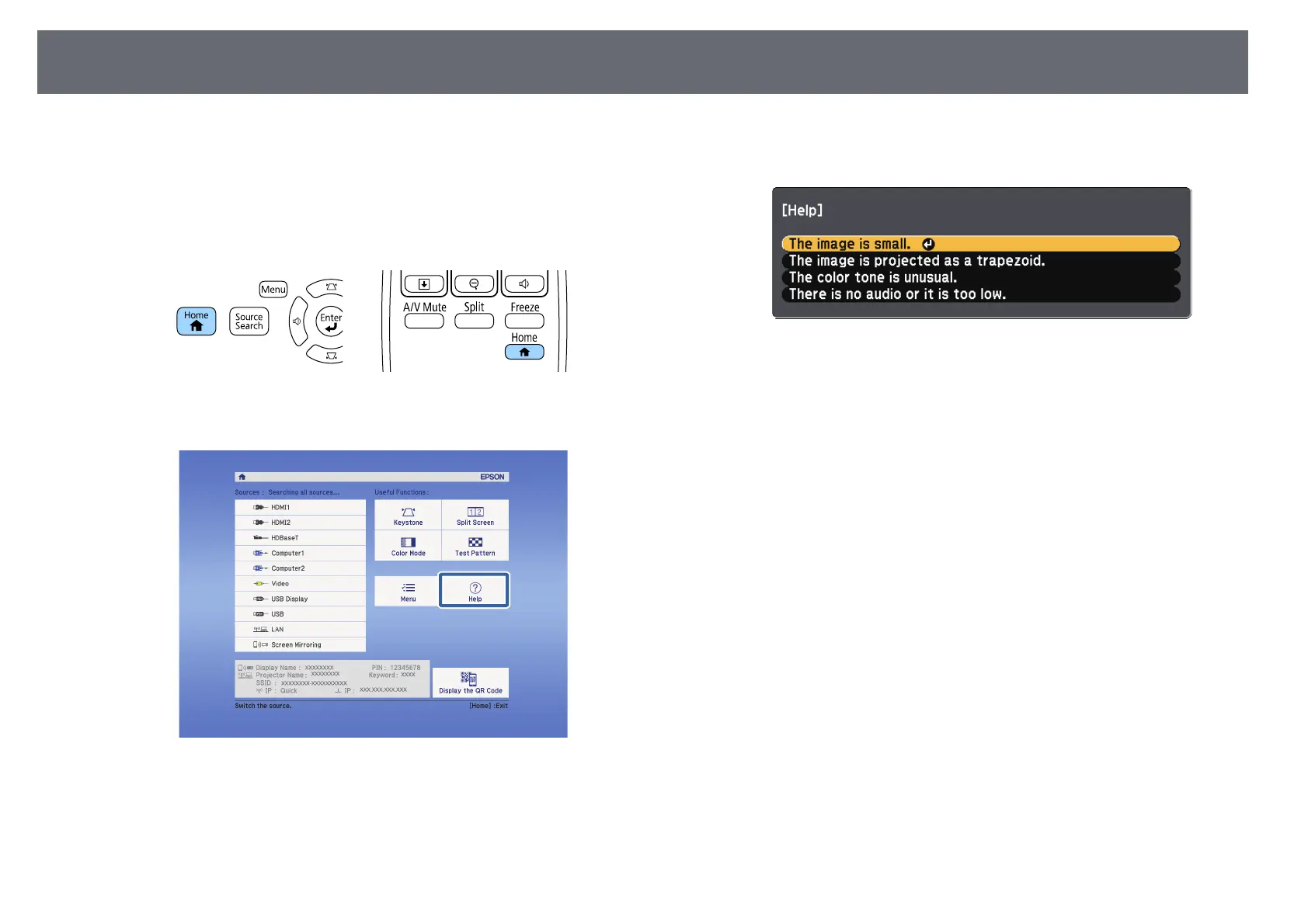 Using the Projector Help Displays