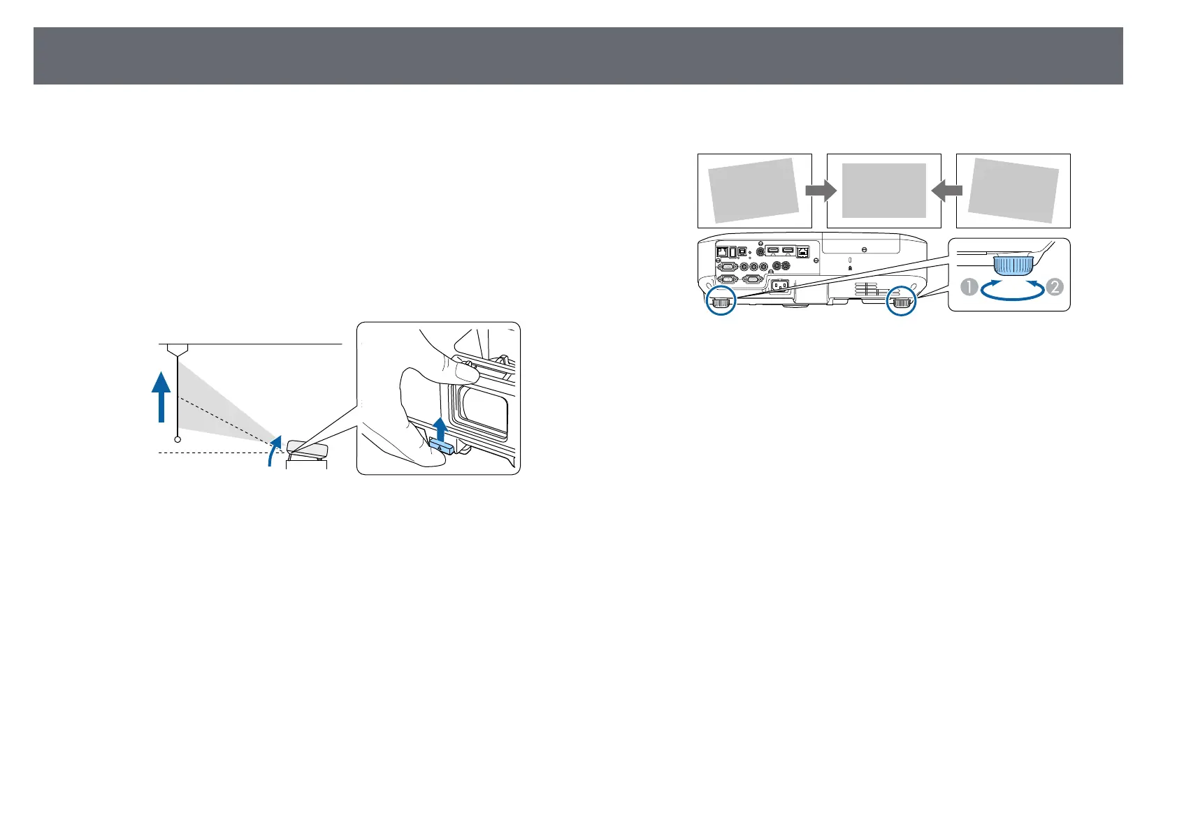 If the image is tilted, rotate the rear feet to adjust their height.