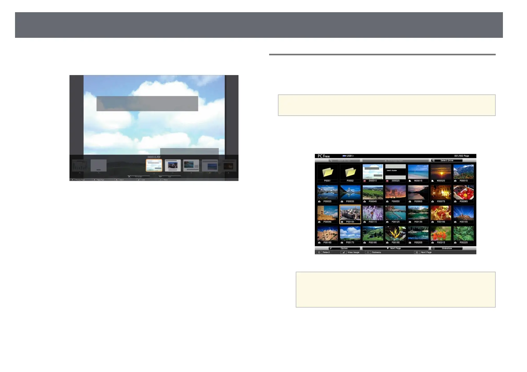 After connecting a USB device to the projector, you can switch to the USB