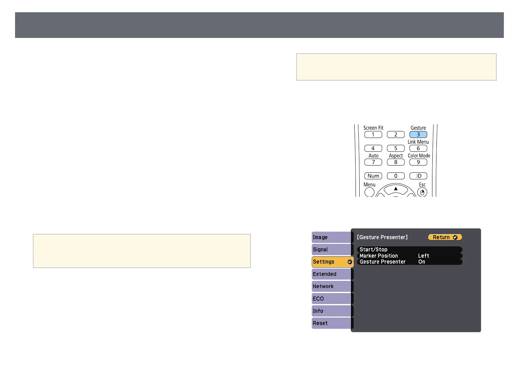• The Gesture Presenter setting is set to On in the projector's Settings menu
