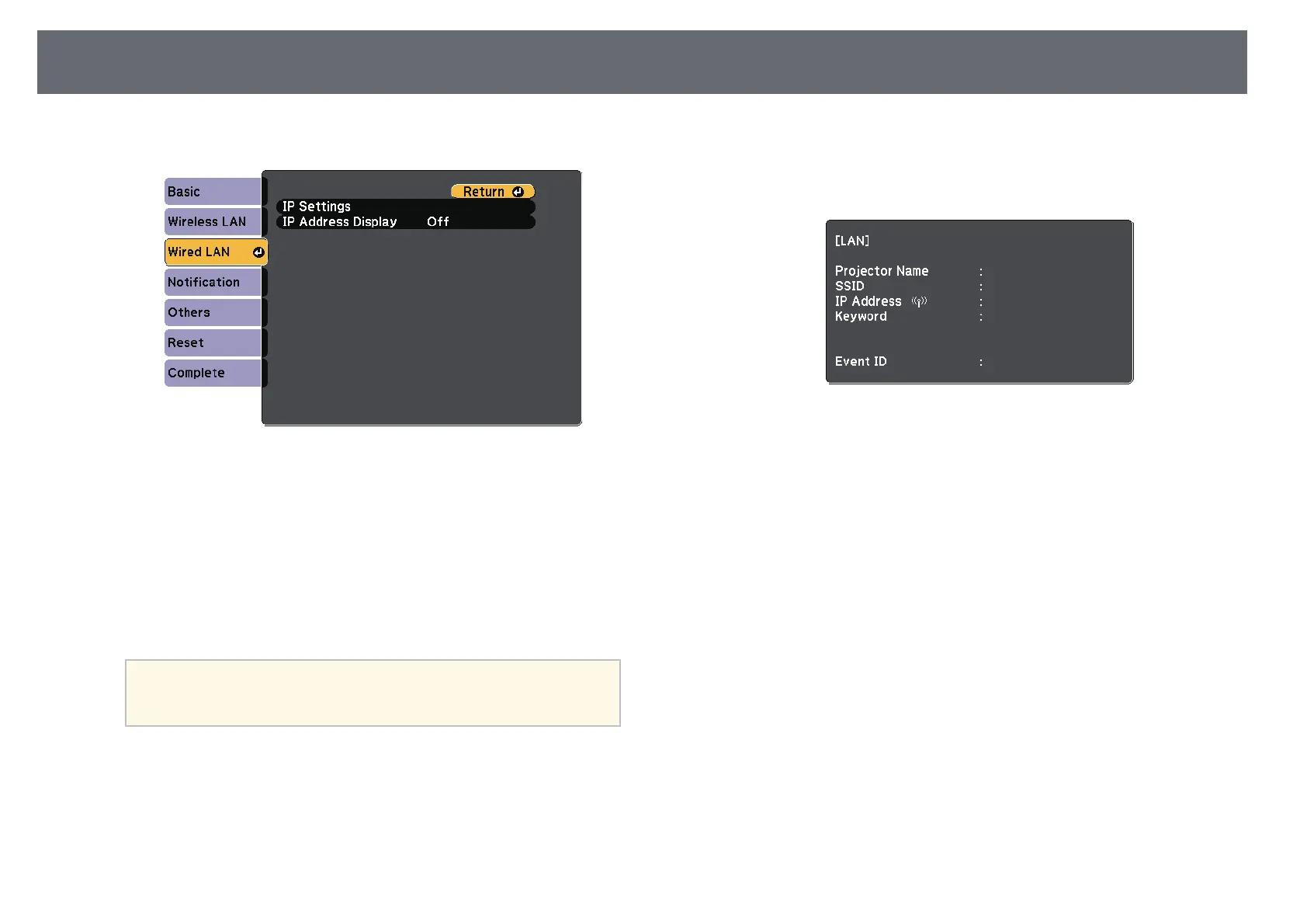 enter the projector's IP Address, Subnet Mask, and Gateway