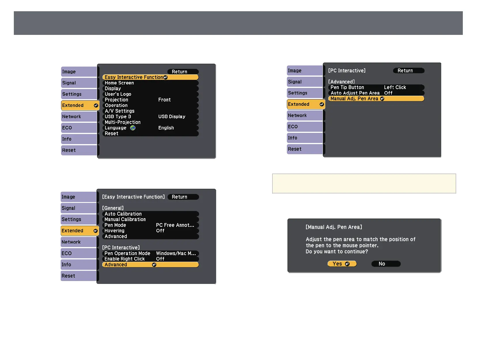 Select Manual Adj. Pen Area and press the [Enter] button.