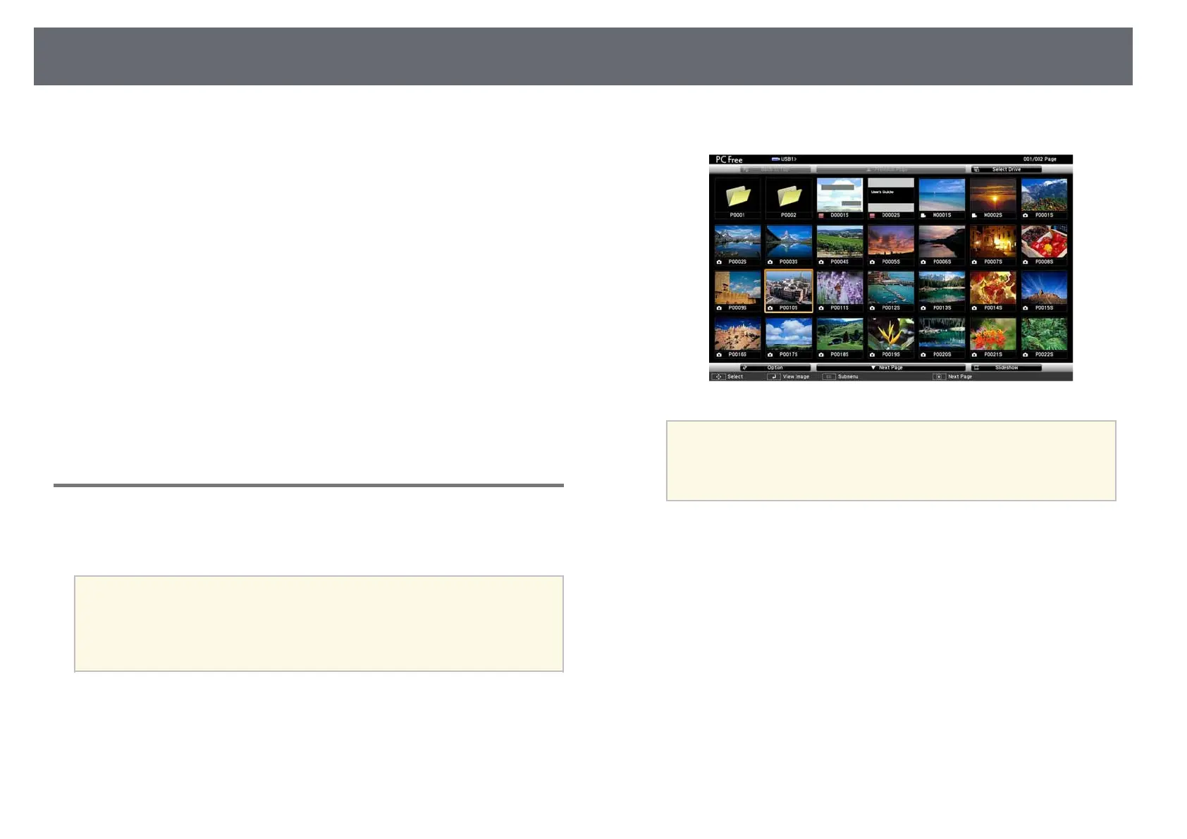 • To display images on the other USB drive, highlight Select