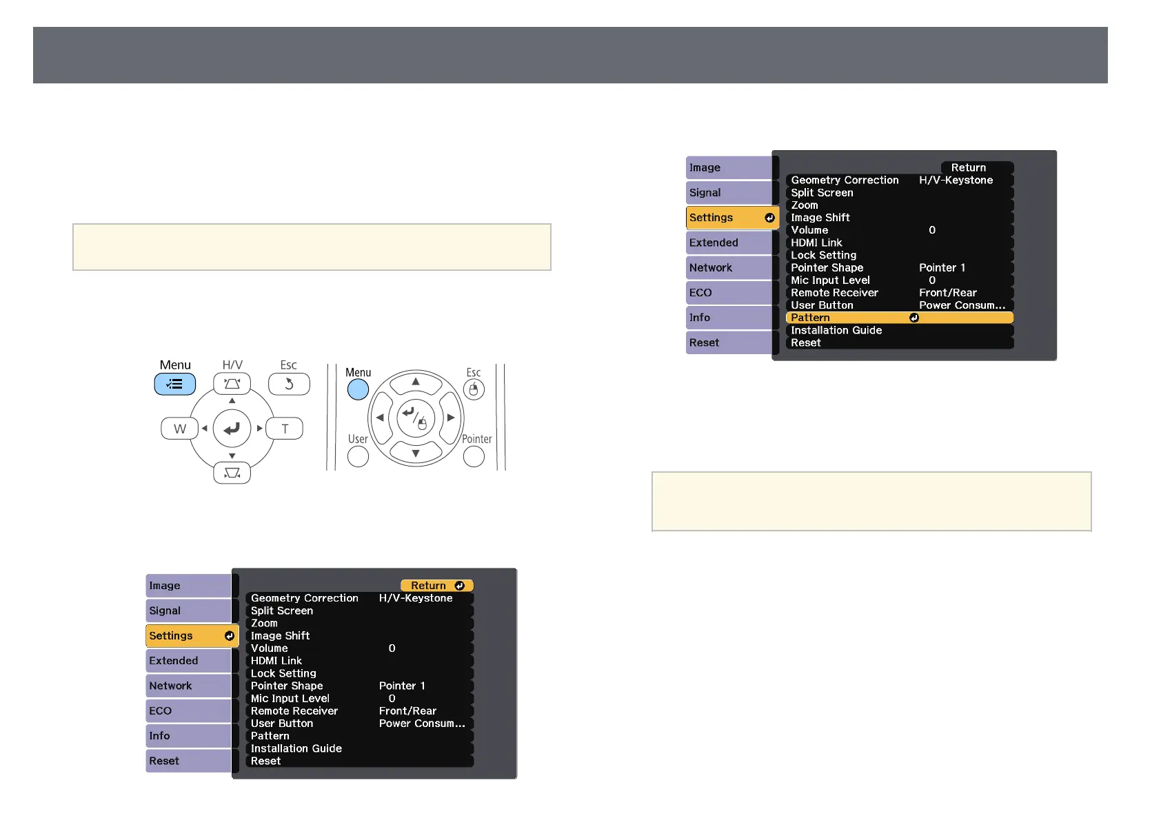 Adjustments such as Keystone, E-Zoom, Aspect, Adjust Zoom,