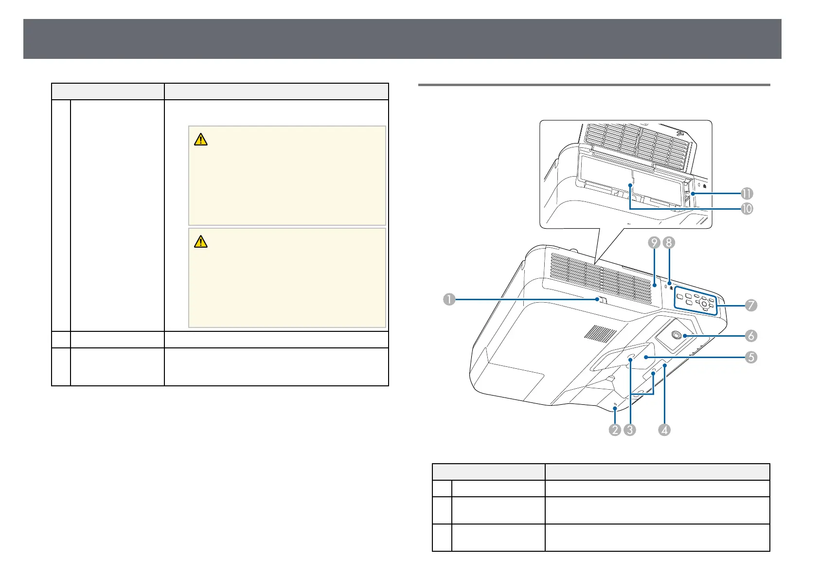 Air exhaust vent Exhaust vent for air used to cool the projector