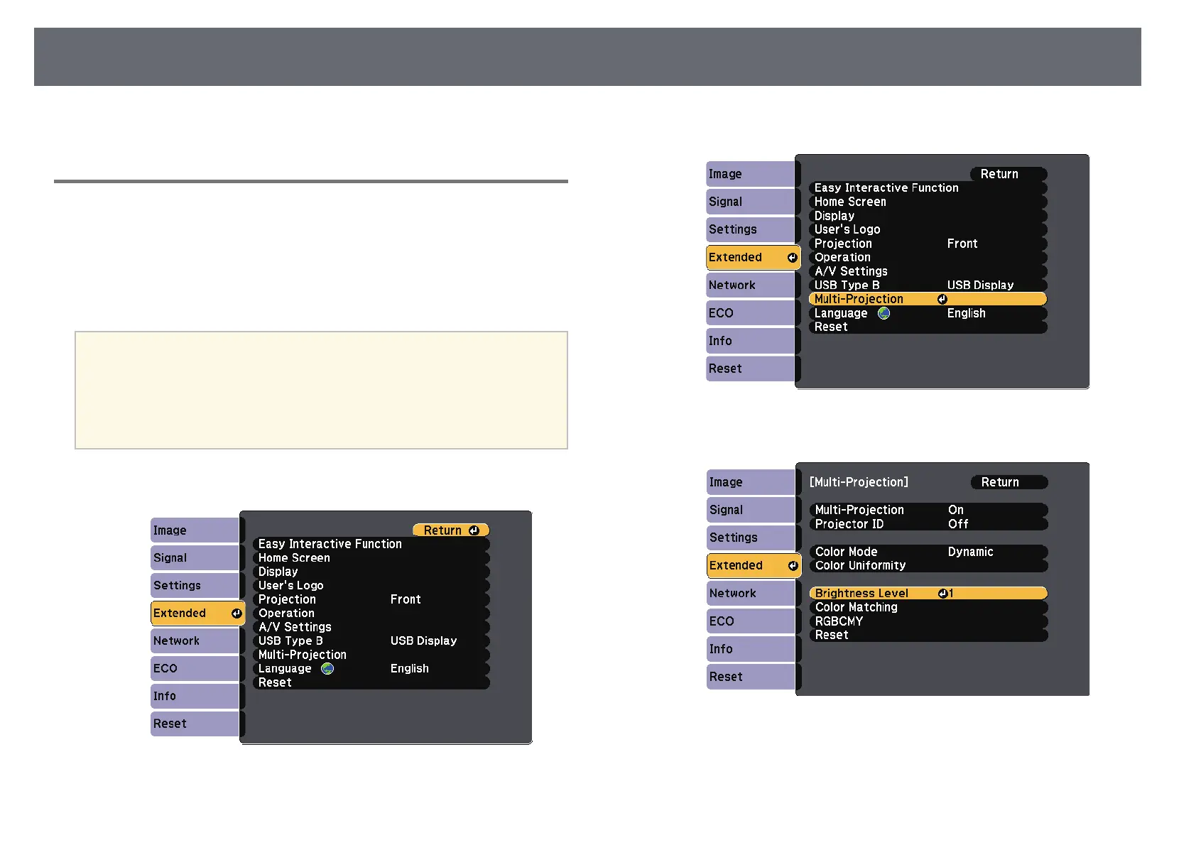 projector's Extended menu so that all the projectors are as bright as the