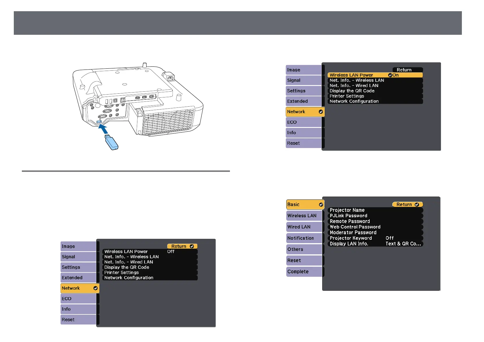 network settings for the projector.