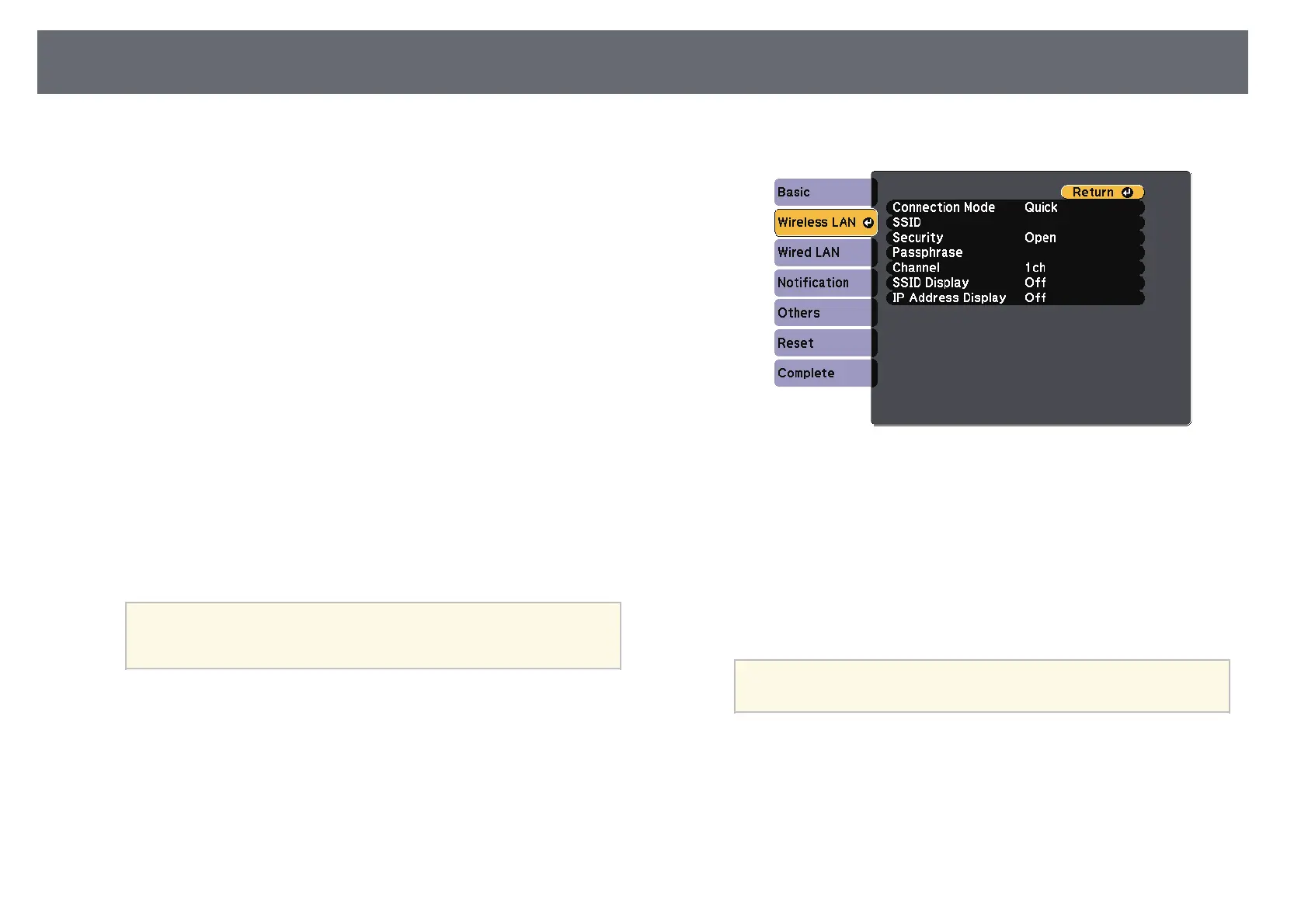 Select the Wireless LAN menu and press [Enter].
