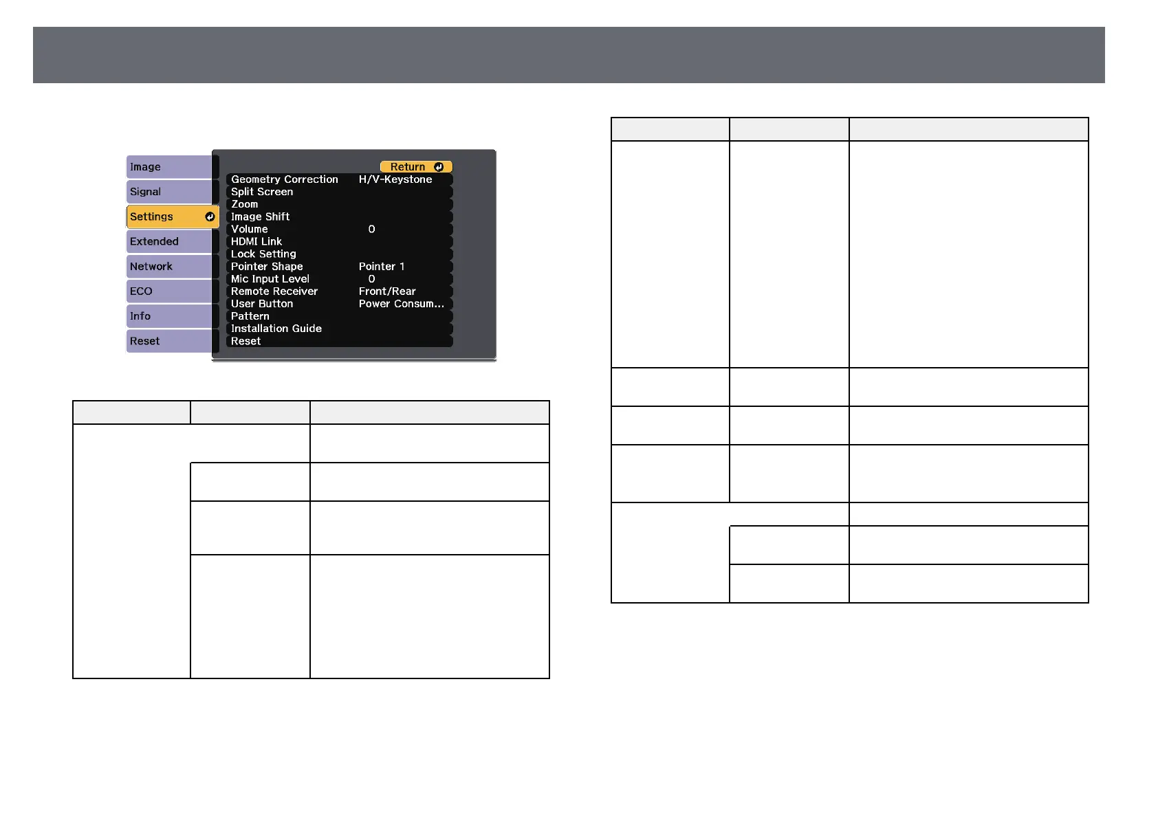Projector Feature Settings - Settings Menu