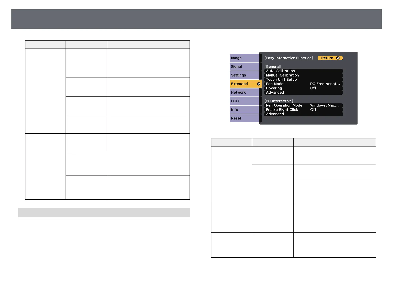 Projector Setup Settings - Extended Menu
