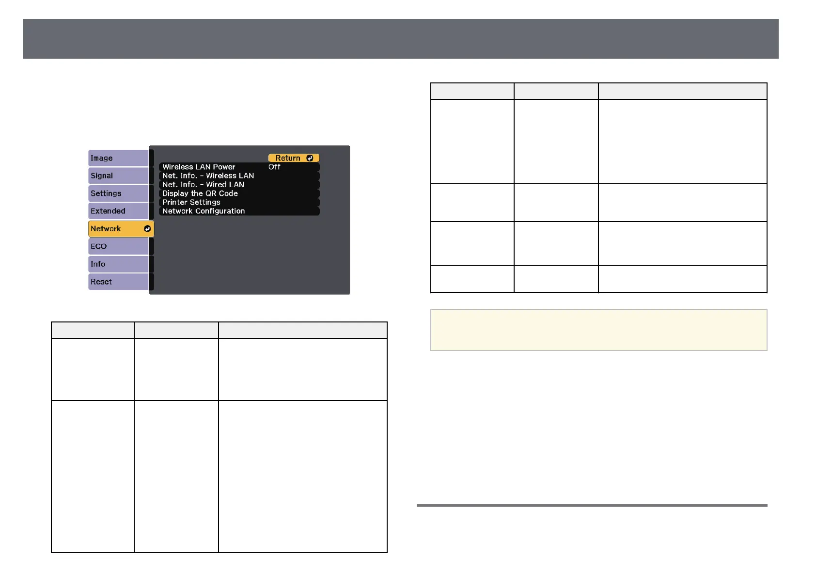 Projector Network Settings - Network Menu