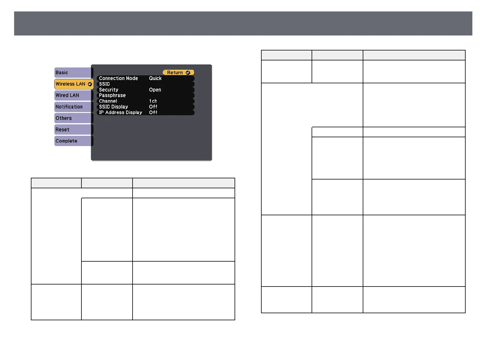 Projector Network Settings - Network Menu