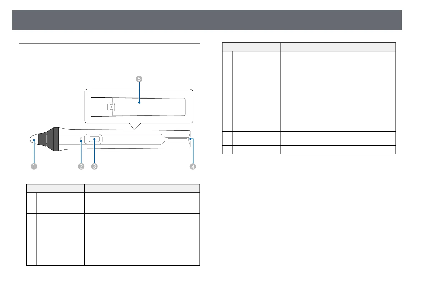 Battery indicator Press the button on the side of the pen to indicate the