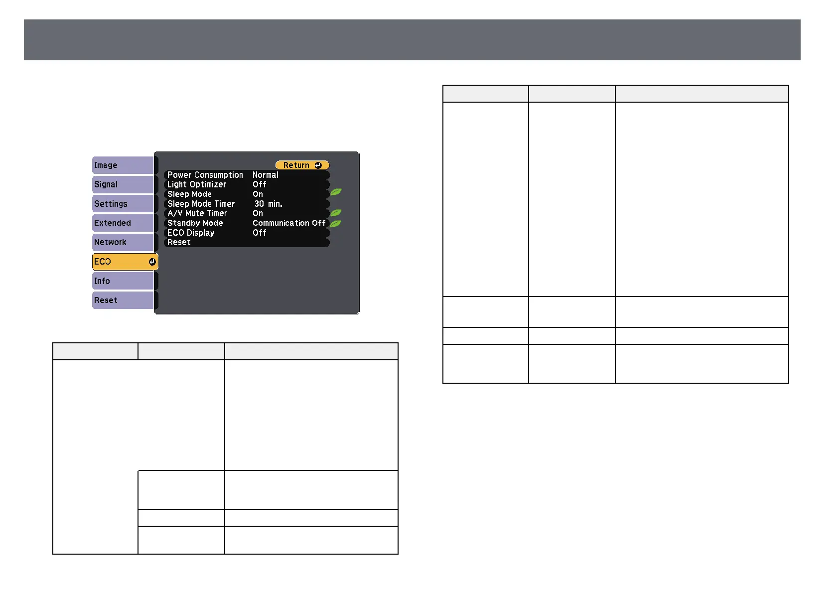 When you select a power-saving setting, a leaf icon appears next to the menu