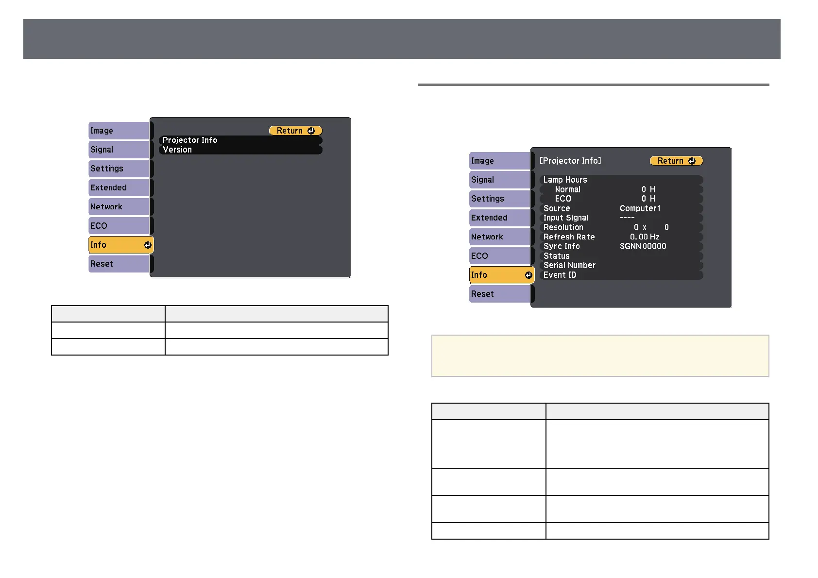 Info Menu - Projector Info Menu