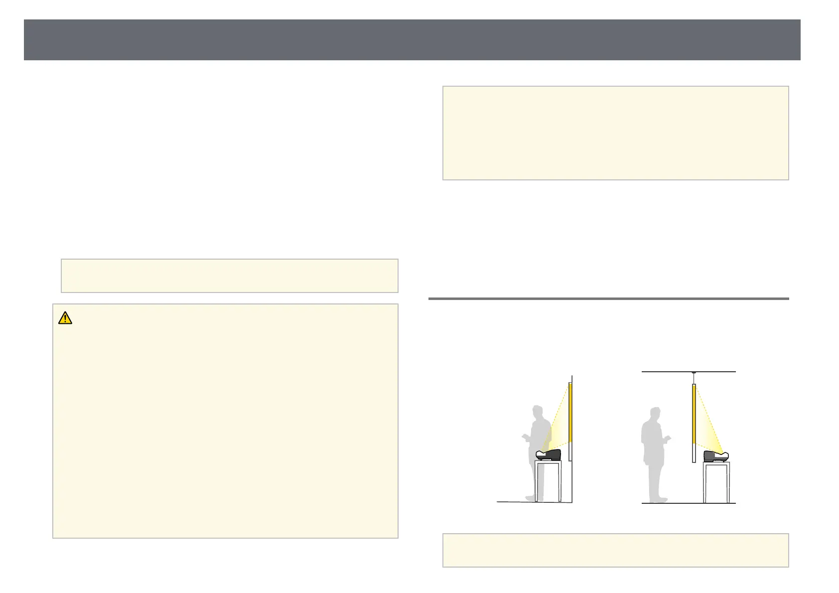 • Place the projector on a sturdy, level surface or install it using a compatible