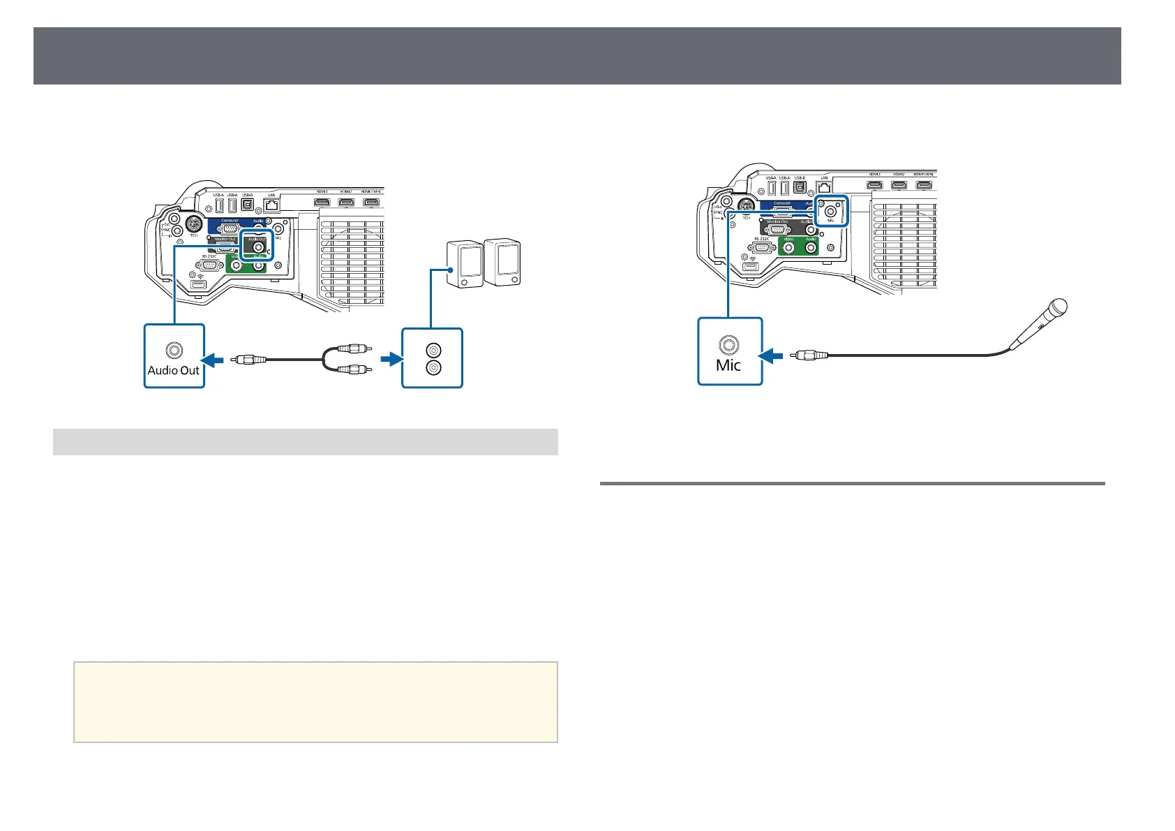 You can connect a microphone to the projector's Mic port to provide audio