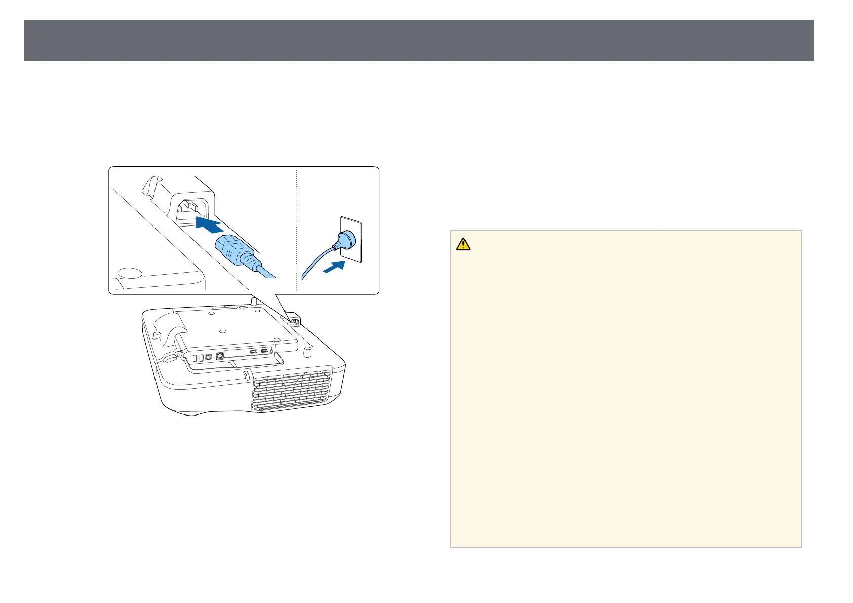 Connect the power cord to the projector's power inlet and plug it into