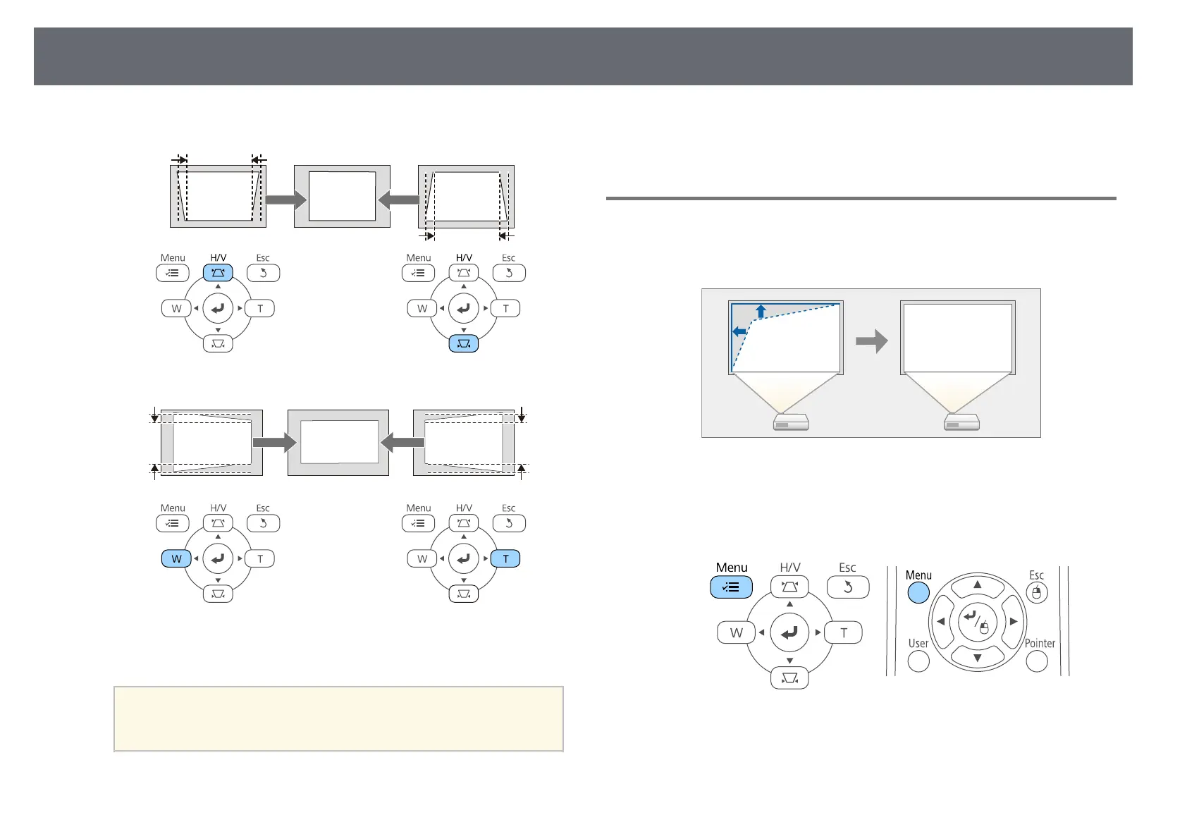 If the projector is installed out of your reach, you can also correct