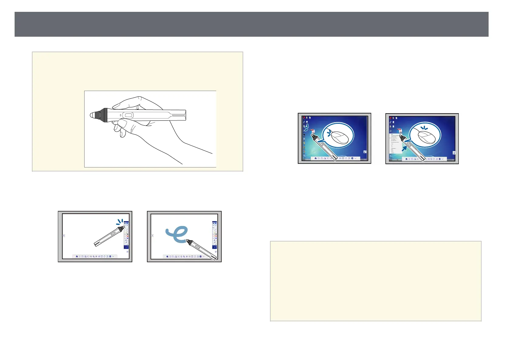 • Use the pen as a mouse in computer interactive mode.