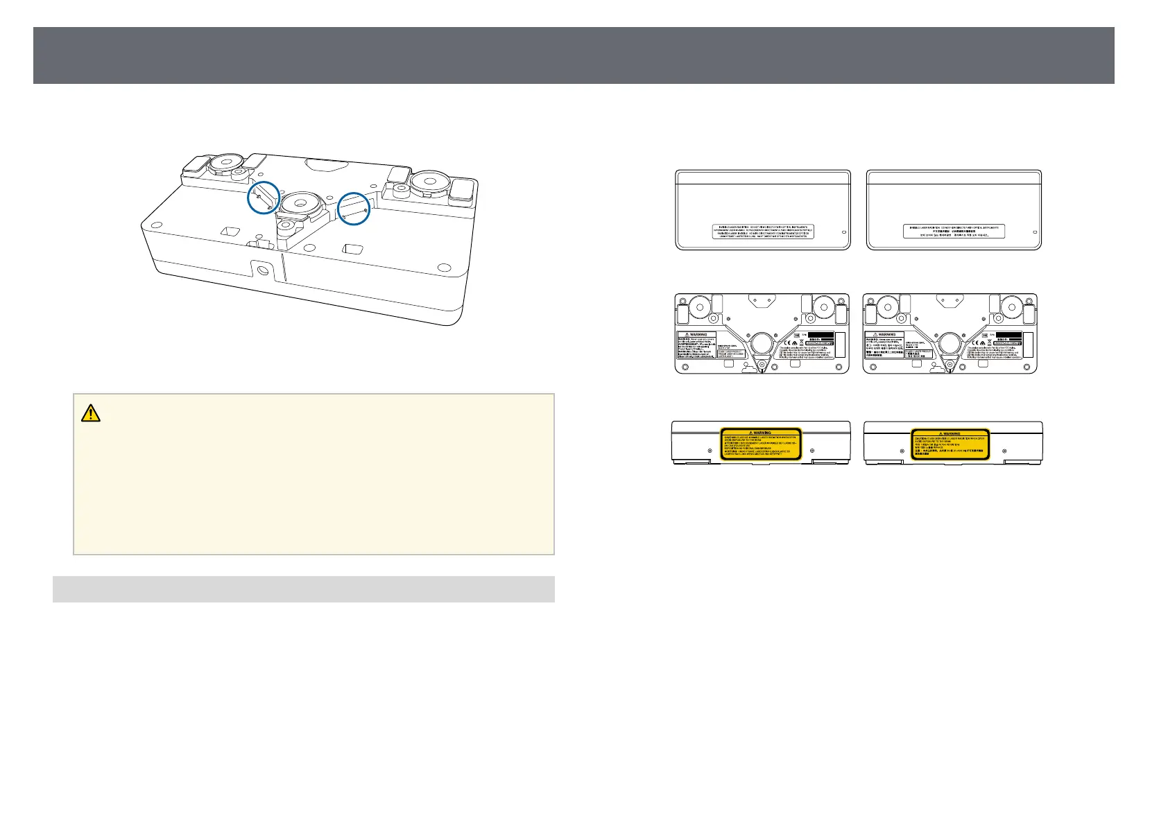 The labels indicating the Class 1 laser product and warnings are placed in the