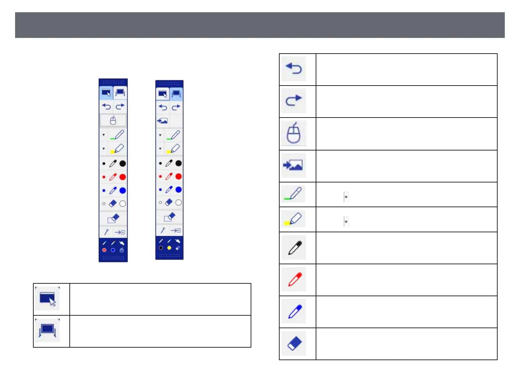 In the following illustration, the annotation mode toolbar is shown on the left,