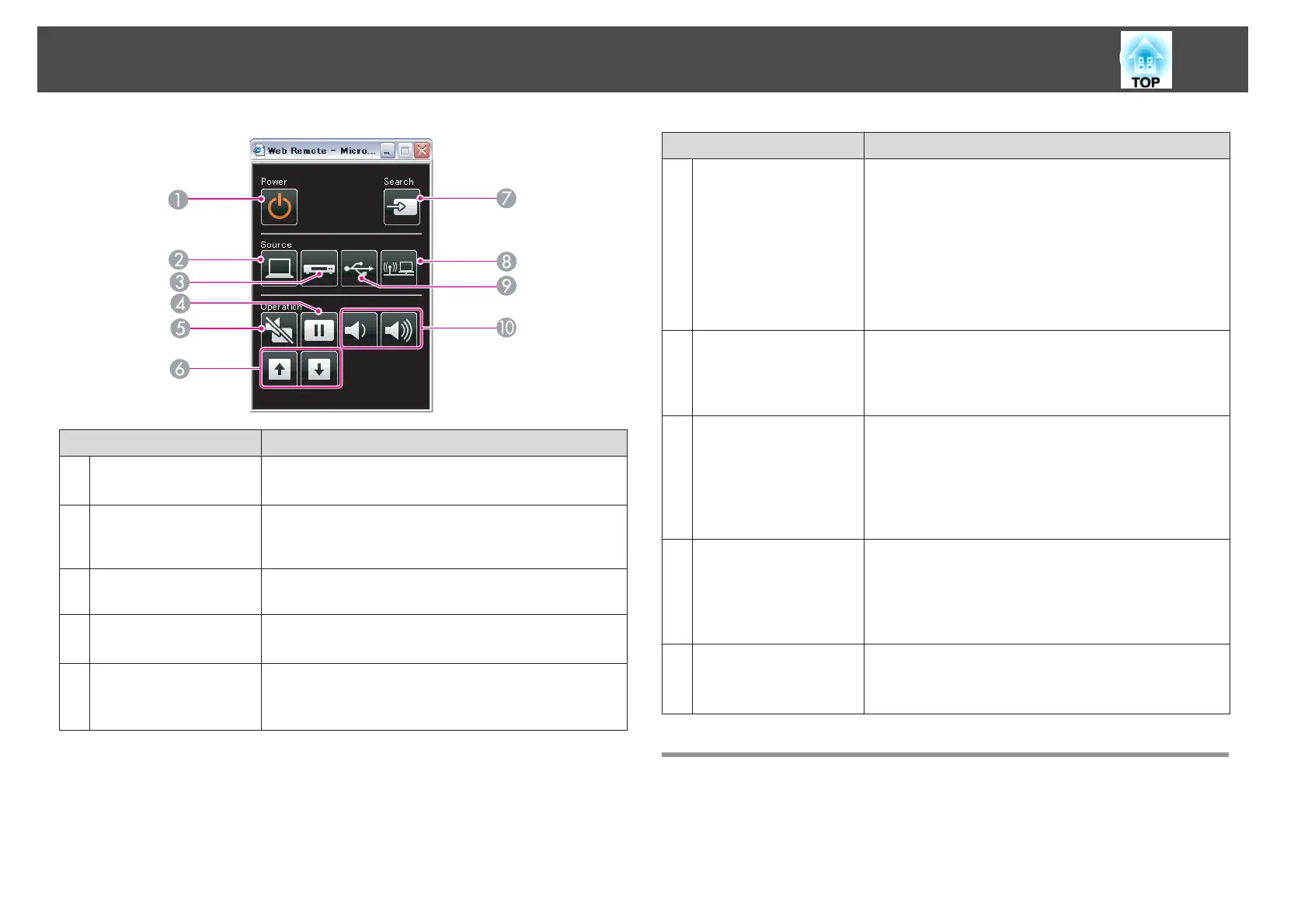 Turns the projector power on or off.